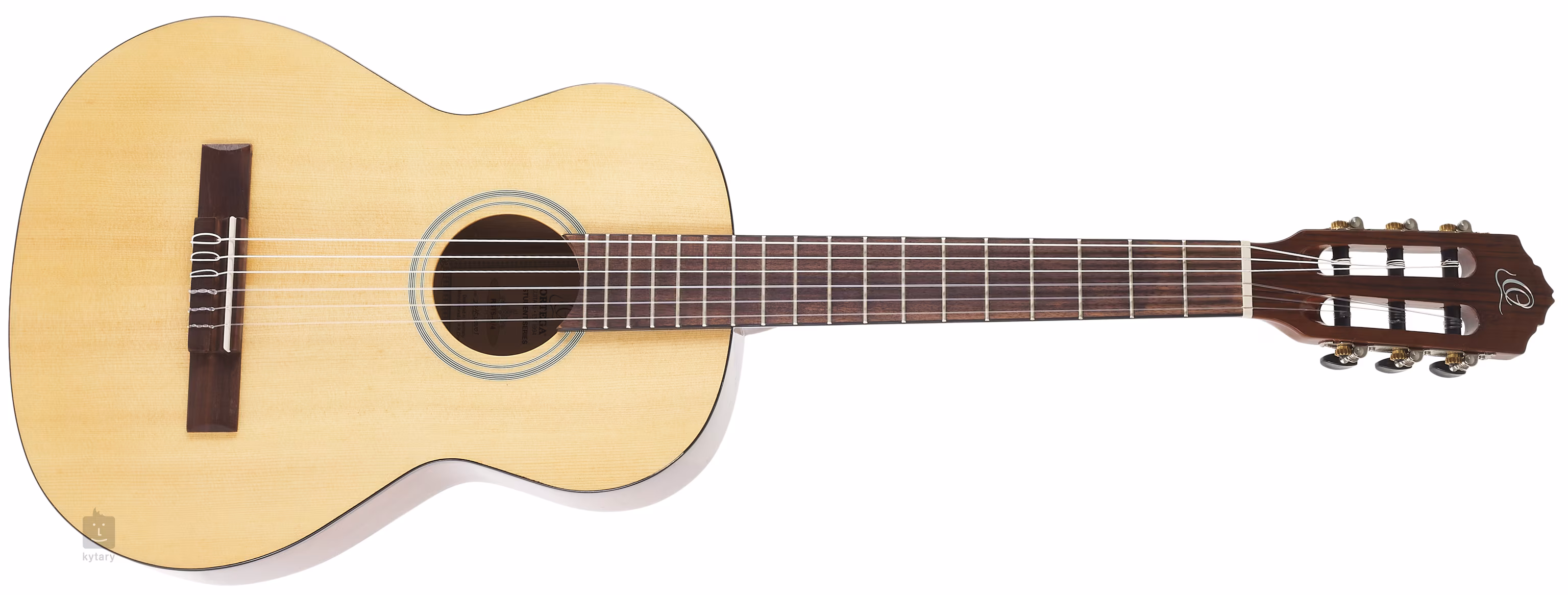 Táto klasická gitara trojštvrťovej veľkosti je vhodná pre deti a mladých študentov hudobných škôl, ktorých menšie prsty sú prispôsobené užšiemu krku a kratšej menzúre gitary. Telo nástroja je vyrobené zo smrekovej a katalpovej vrstvy a mahagónový krk je spojený s orechovým hmatníkom s osemnástimi pražcami. Strohý dizajn je decentne zdobený čiernym ABS lemovaním a logom na hlavici.
