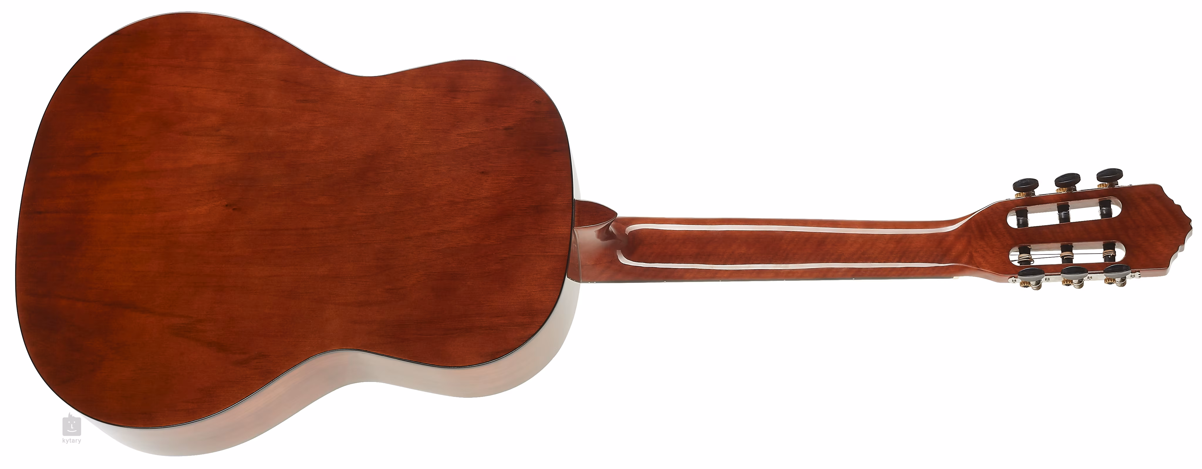 Nástroje Ortega zo série Student sú najjednoduchšou voľbou pre začiatok s klasickou gitarou. Ide o vysoko kvalitné klasické gitary v dospelých a detských veľkostiach, ktoré sú k dispozícii za veľmi atraktívnu cenu. Príďte si ich vyskúšať a presvedčte sa sami. Telo tejto gitary je vyrobené z laminovaného smreku a katalpy. Mahagónový krk je vybavený orechovým hmatníkom s devätnástimi pražcami. Strohý dizajn je jemne zdobený čiernym ABS lemovaním a logom na hlave gitary.