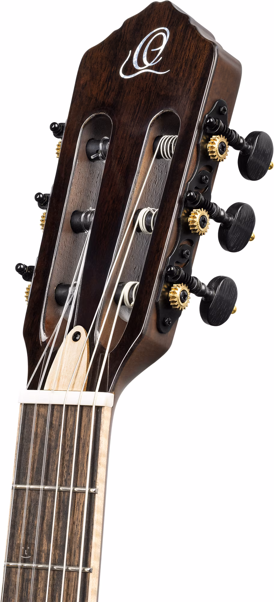 O ozvučenie sa stará aktívna elektronika Ortega MagusX/G s trojpásmovým ekvalizérom a vstavanou ladičkou. Struny sú osadené kosteným hmatníkom v klasických ladiacich mechanikách v čiernom prevedení a hmatníkom z figového dreva. Pekné spracovanie podčiarkuje figurované javorové telo a väzba hmatníka, perleťové pozičné bodky na dvanástom pražci a vrchná úprava Gloss Sunburst.