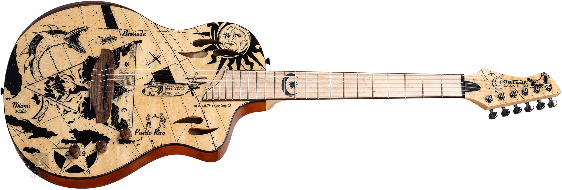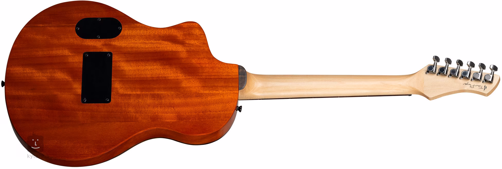 Struny sú ukotvené v mostíku z figového dreva a 6-in-line liatinových ladiacich mechanikách, ktoré sa častejšie spájajú s elektrickými gitarami, prostredníctvom čiernej ABS matice a sedla. Krásne remeselné spracovanie podčiarkuje opierka ramena a lemovanie z figového dreva.