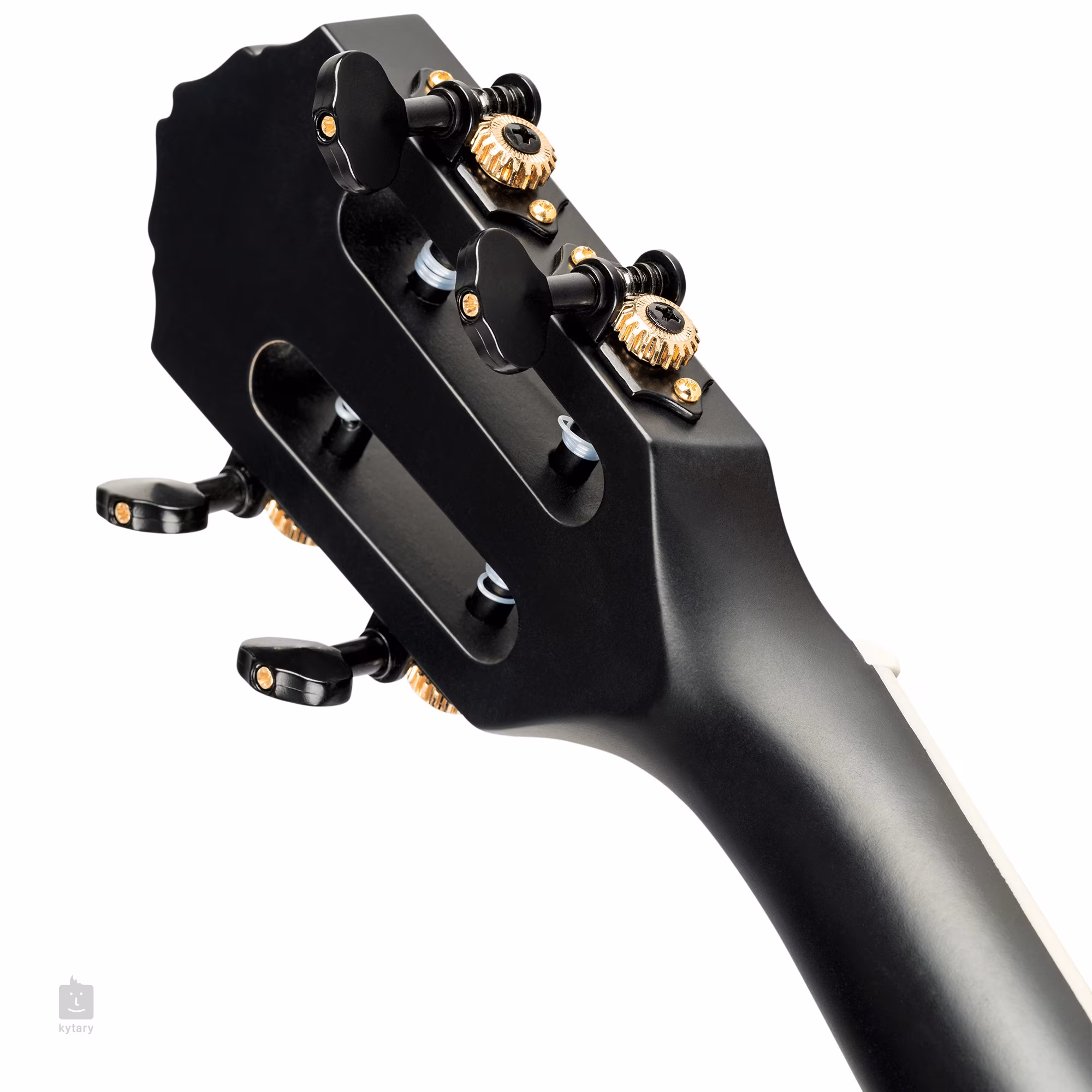 Telo ľavorukého ukulele Ortega RTPS Tenor LH SBK je vyrobené z masívneho komorovaného okoumé a smrekovej vrchnej dosky. K mahagónovému krku je prilepený hmatník z dreva purpleheart osadený dvadsaťjeden pražcami. Nižší výrez tela uľahčuje hmatník vo vyšších polohách.