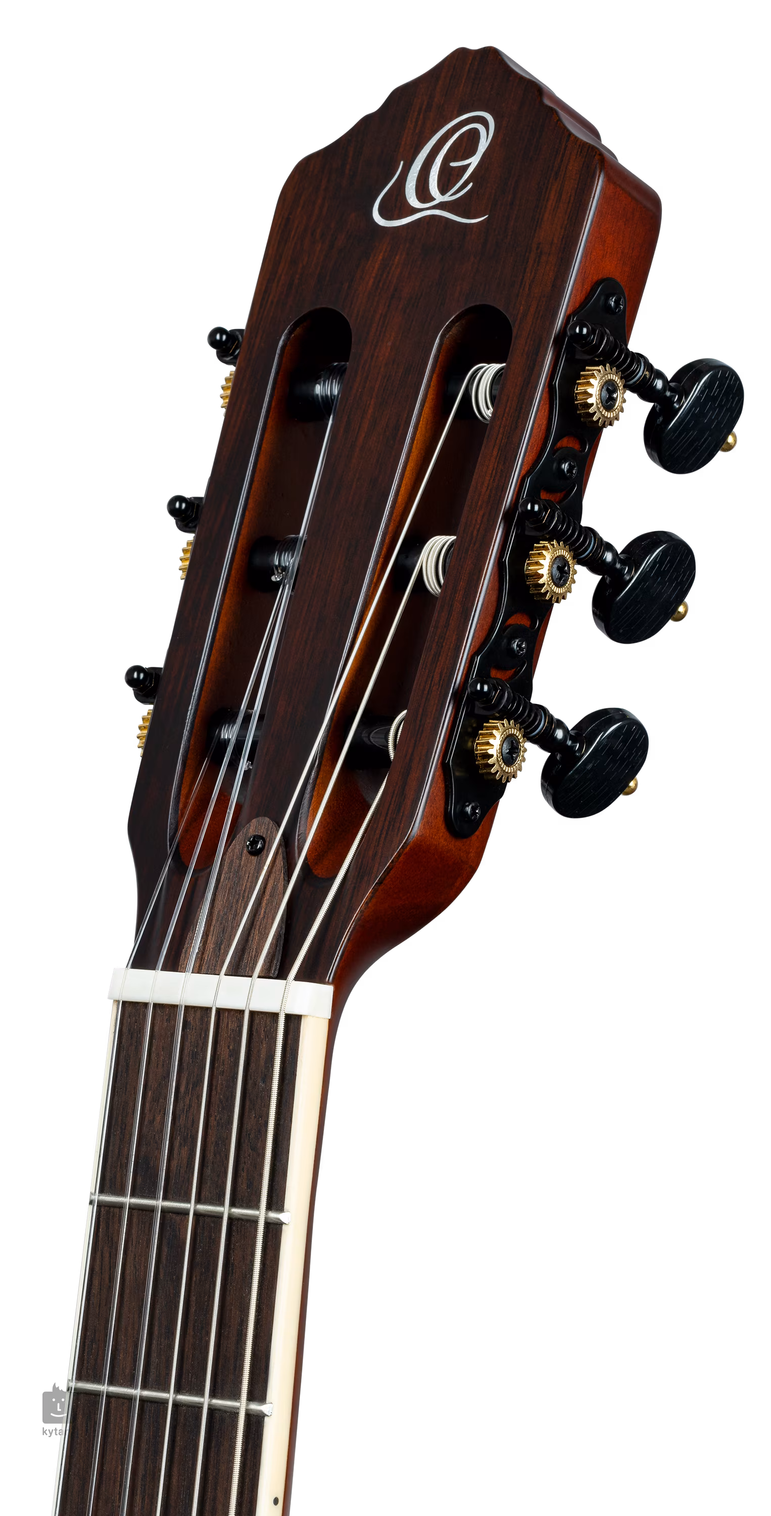 O ozvučenie sa stará aktívna elektronika Ortega MagusX/G s trojpásmovým ekvalizérom a vstavanou ladičkou. Struny sú osadené kosteným hmatníkom v klasických ladiacich mechanikách v čiernom prevedení a hmatníkom z figového dreva. Pekné spracovanie podčiarkuje biela väzba tela a hmatníka a perleťové pozičné bodky na dvanástom pražci.