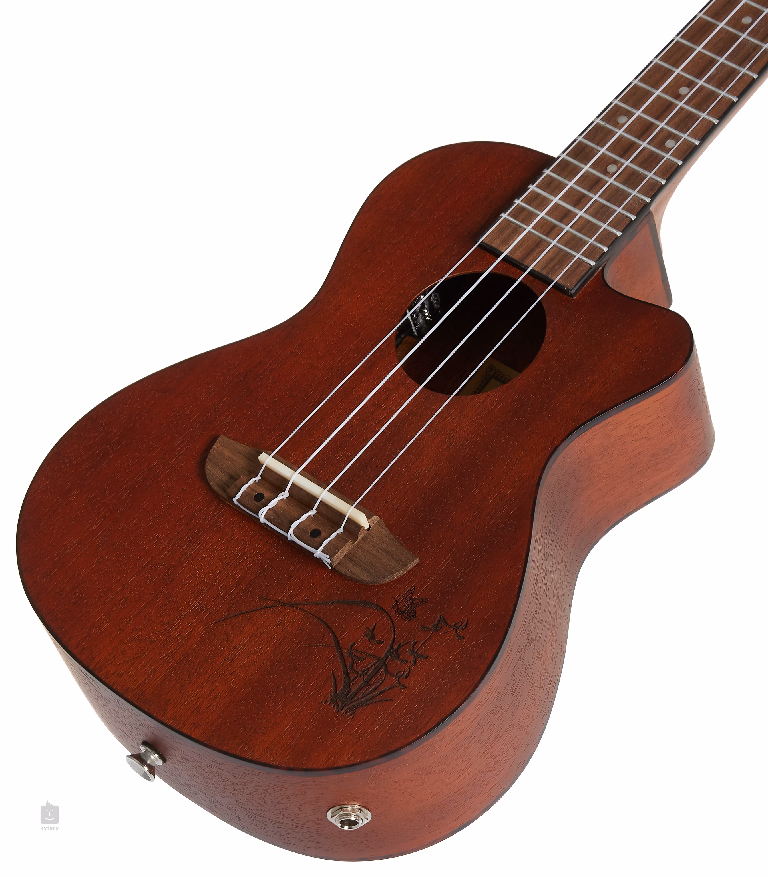 Telo elektroakustického koncertného ukulele RU5MM-CE je vyrobené z preglejky sapele. Predná doska je zdobená laserovým gravírovaním, telo je obklopené ABS lištou. Mahagónový krk je prilepený k orechovému hmatníku osadenému osemnástimi pražcami, orientáciu na jeho povrchu uľahčujú polohové bodky. Struny sú osadené v hmatníku z orechového dreva a uzavretých ladiacich mechanikách gitarového typu (Die-Cast).