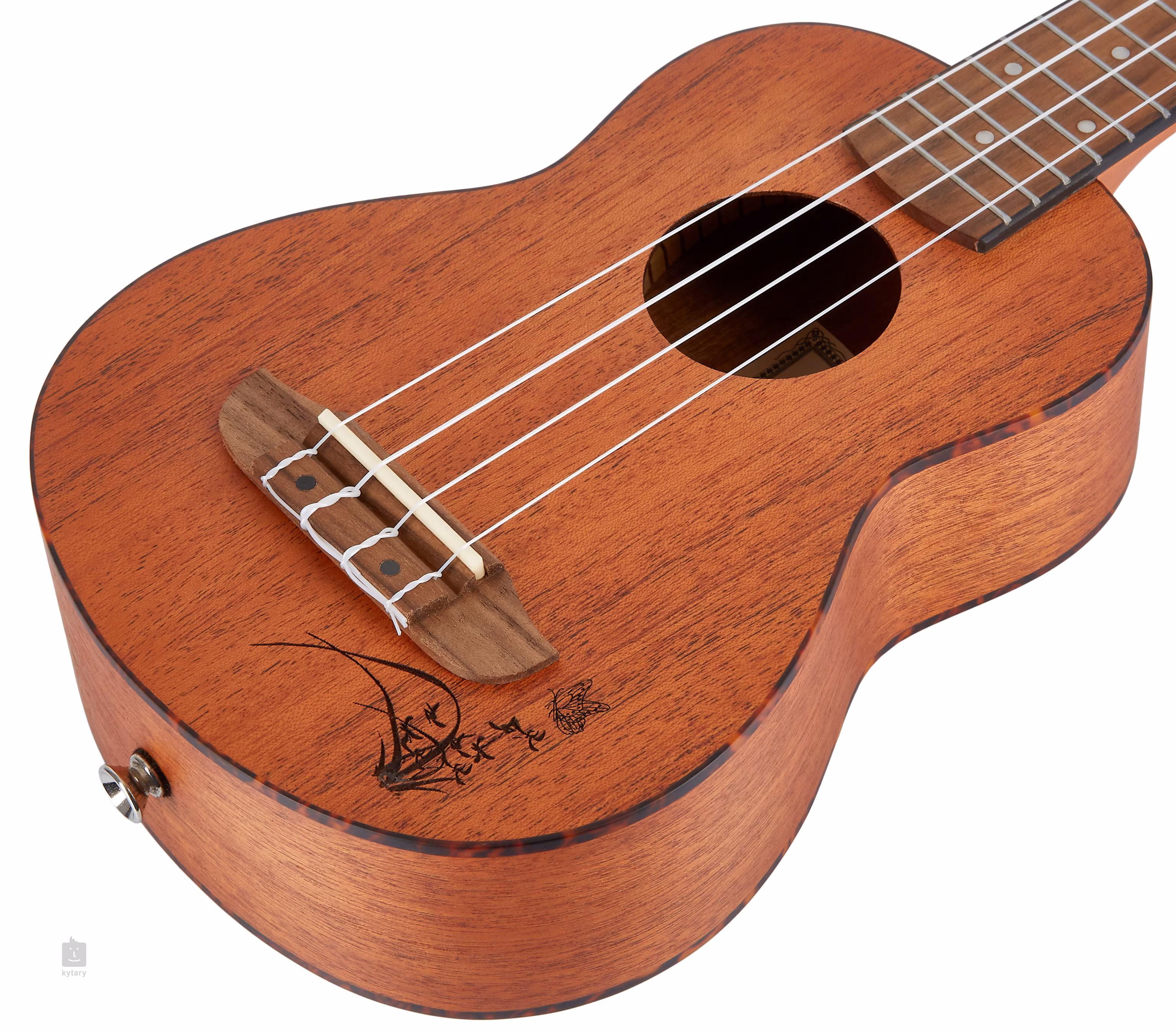 Telo sopránového ukulele RU5MM-SO je vyrobené z preglejky sapele. Predná doska je zdobená laserovým gravírovaním, telo obopína pás z materiálu ABS. Mahagónový krk je osadený orechovým hmatníkom s pätnástimi pražcami a polohovacie bodky uľahčujú orientáciu. Struny sú osadené v orechovom hmatníku a uzavretých ladiacich mechanikách gitarového typu (Die-Cast).