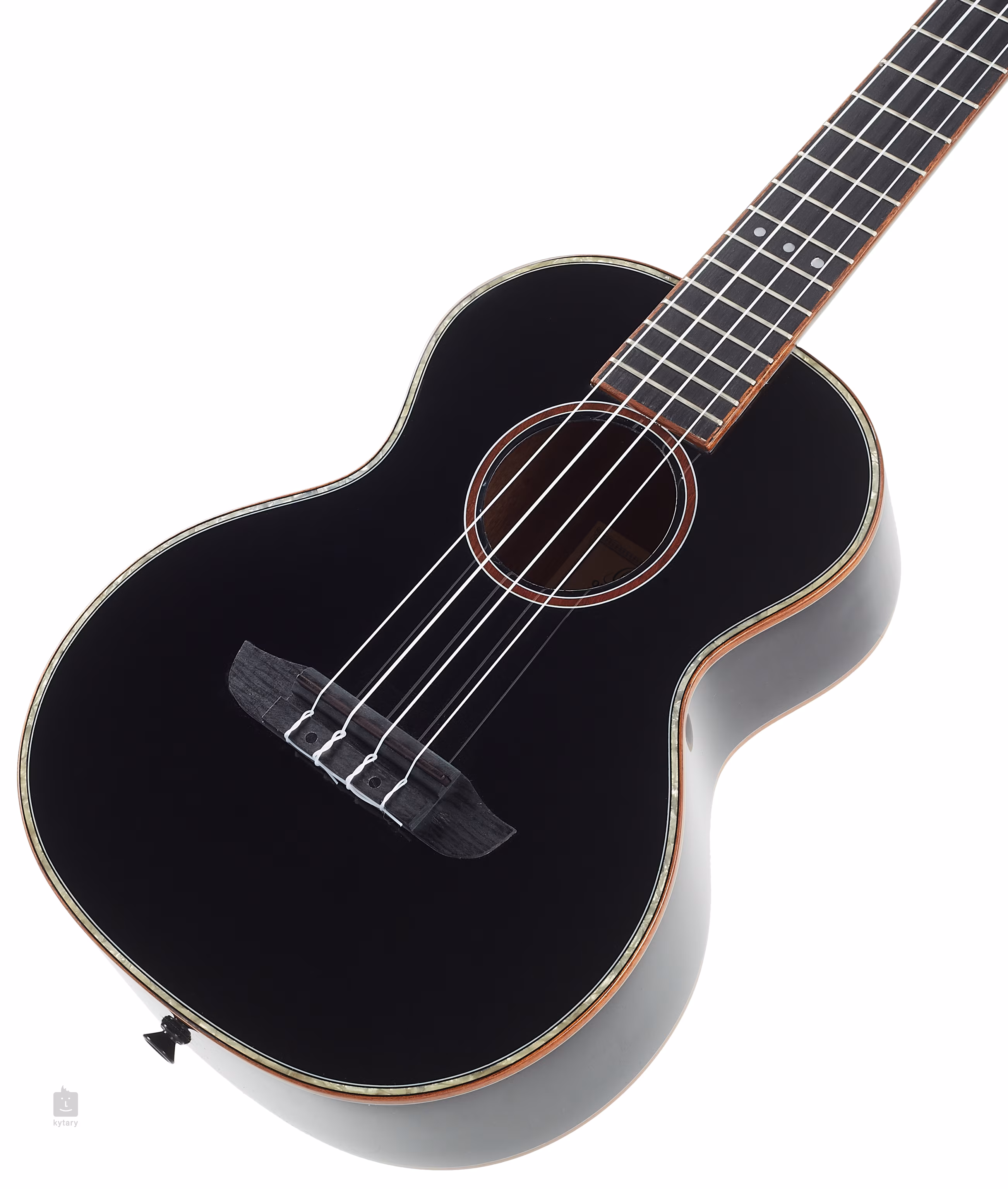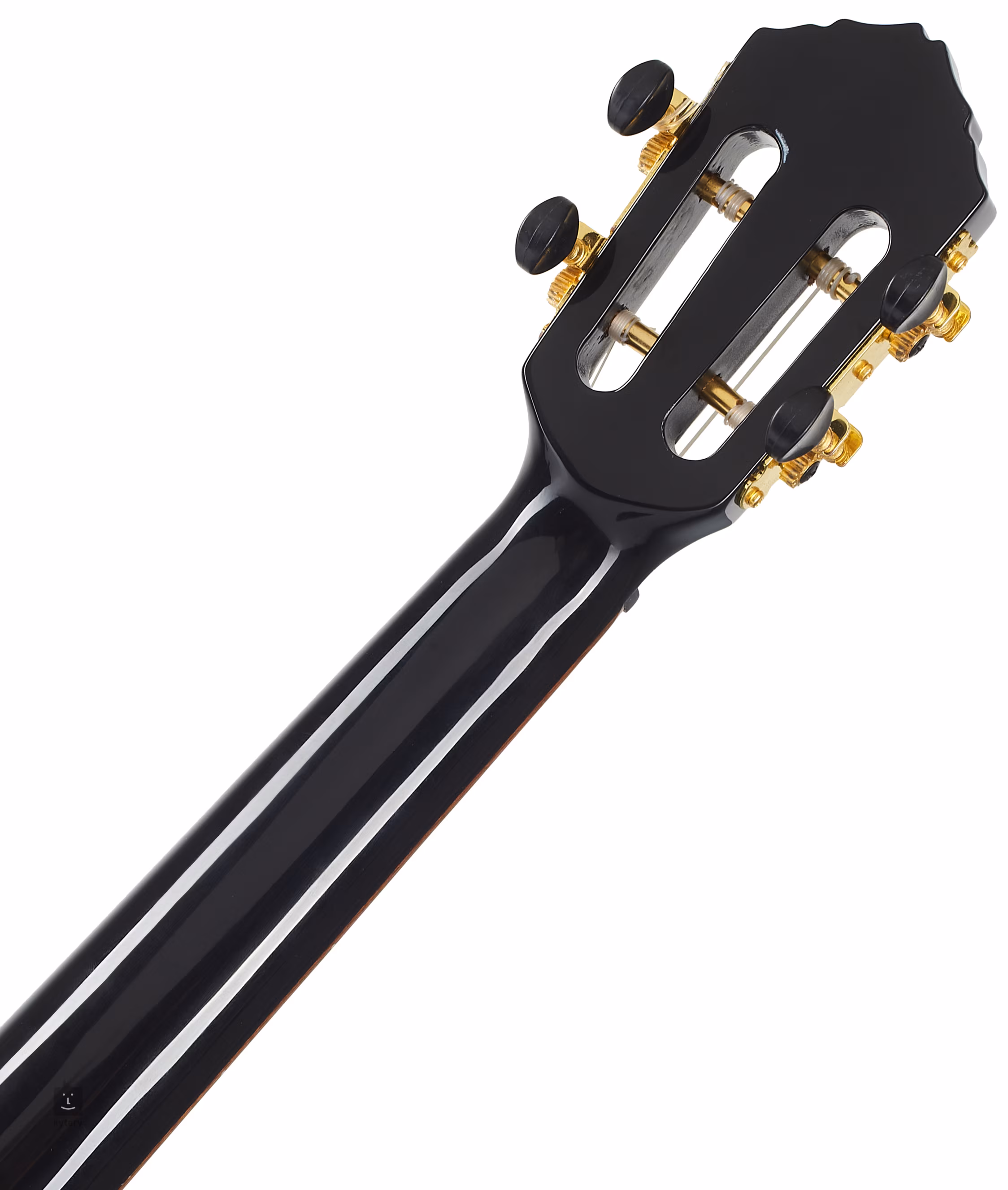 Struny sú uchytené v klasických zlatých otvorených mechanikách s čiernymi kolíkmi a kompozitnou hlavou. Jemné spracovanie podčiarkuje mahagónové obloženie tela s perleťovou intarziou a orechová dyha na hlavici zdobená logom spoločnosti.