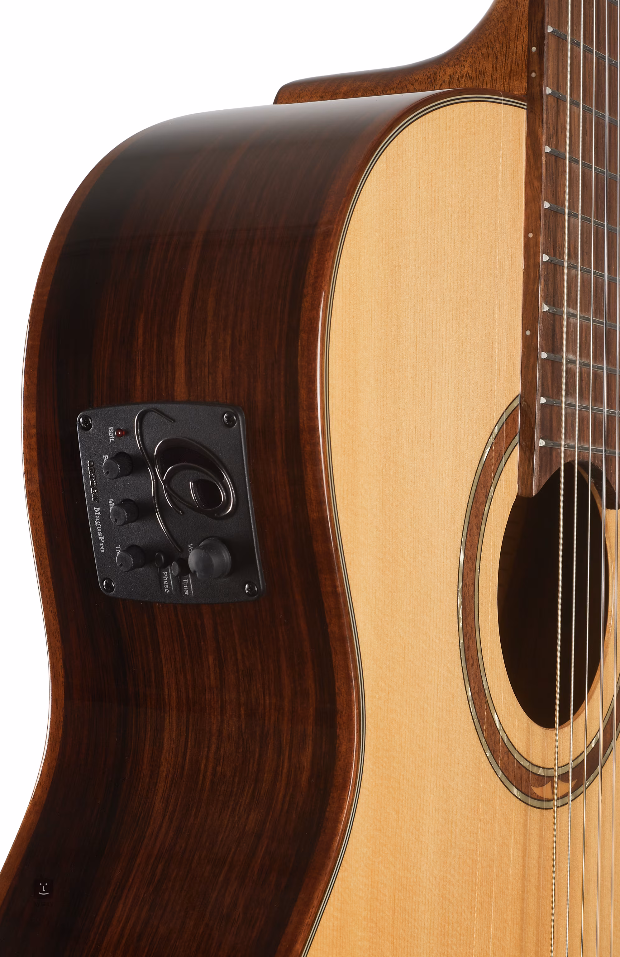 Tento konkrétny model je tiež vybavený elektronikou Ortega MagusPro-NL s integrovanou ladičkou, trojpásmovým ekvalizérom, ovládaním hlasitosti a gombíkom Phase s funkciou fázového posunu (potlačenie šumu).