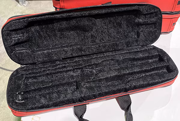 Priečne puzdro na flautu z imitácie kože/kože. Má tvarovaný zamatový interiér, vonkajšie vrecko na drobné príslušenstvo, rukoväť, ramenný popruh a zapínanie na zips.