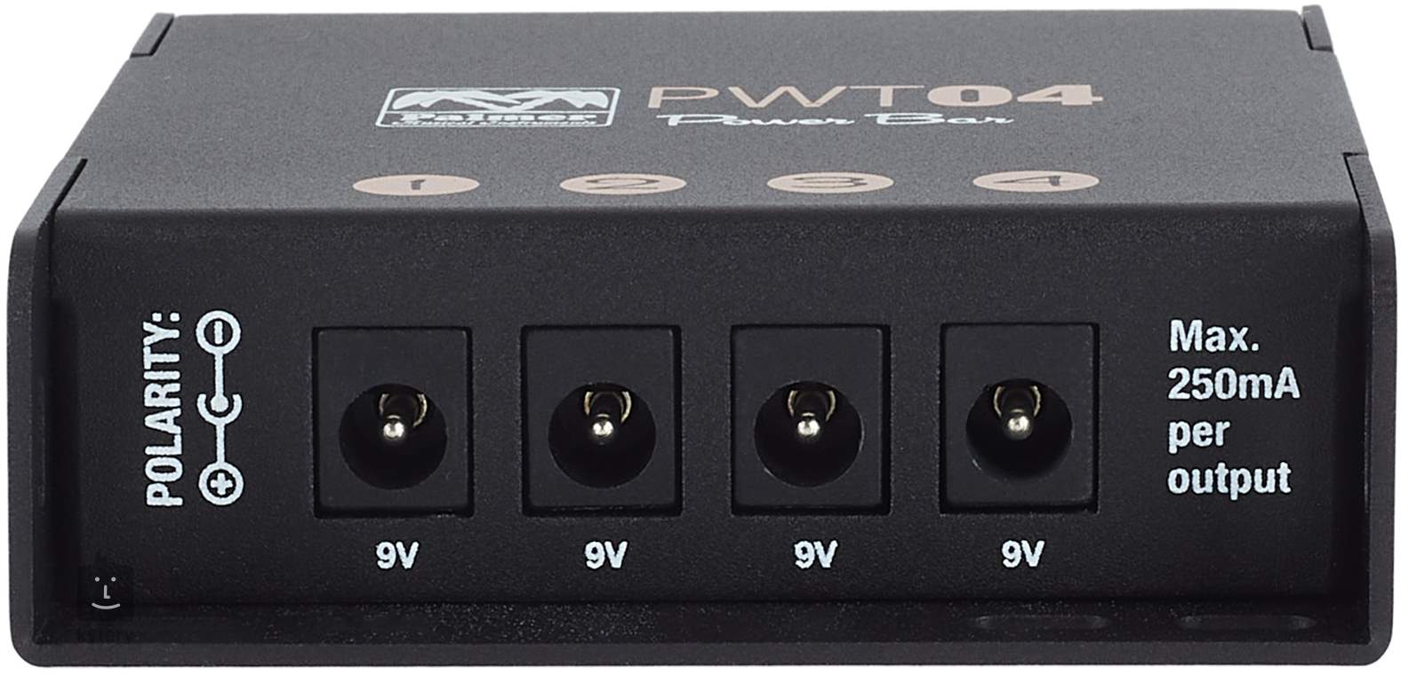 Univerzálny multiadaptér so štyrmi izolovanými výstupmi 9 V (250 mA). Súčasťou balenia je napájací adaptér a štyri prepojovacie káble na napájanie efektov.