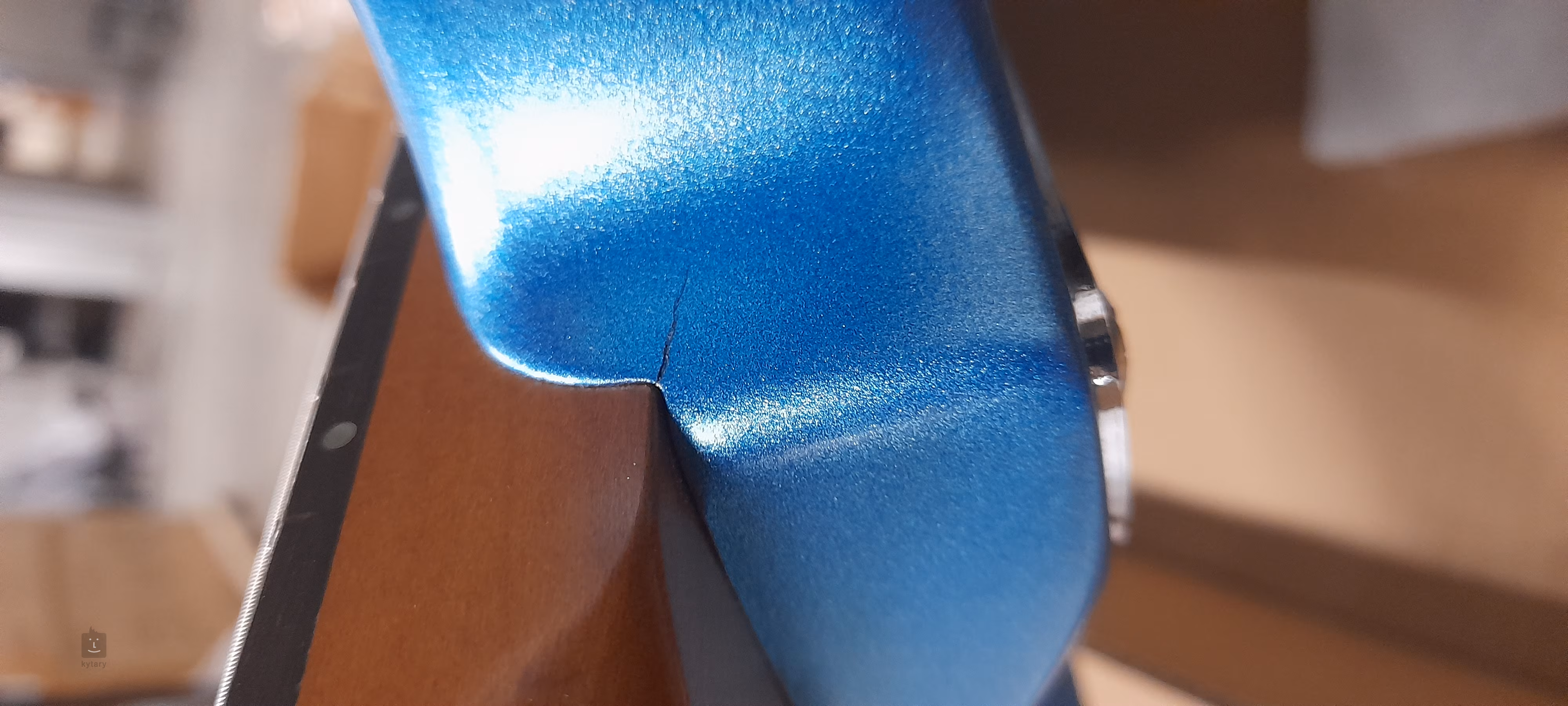 Poškodený tovar – prasklina v laku na spoji medzi telom a krkom (pozri foto).