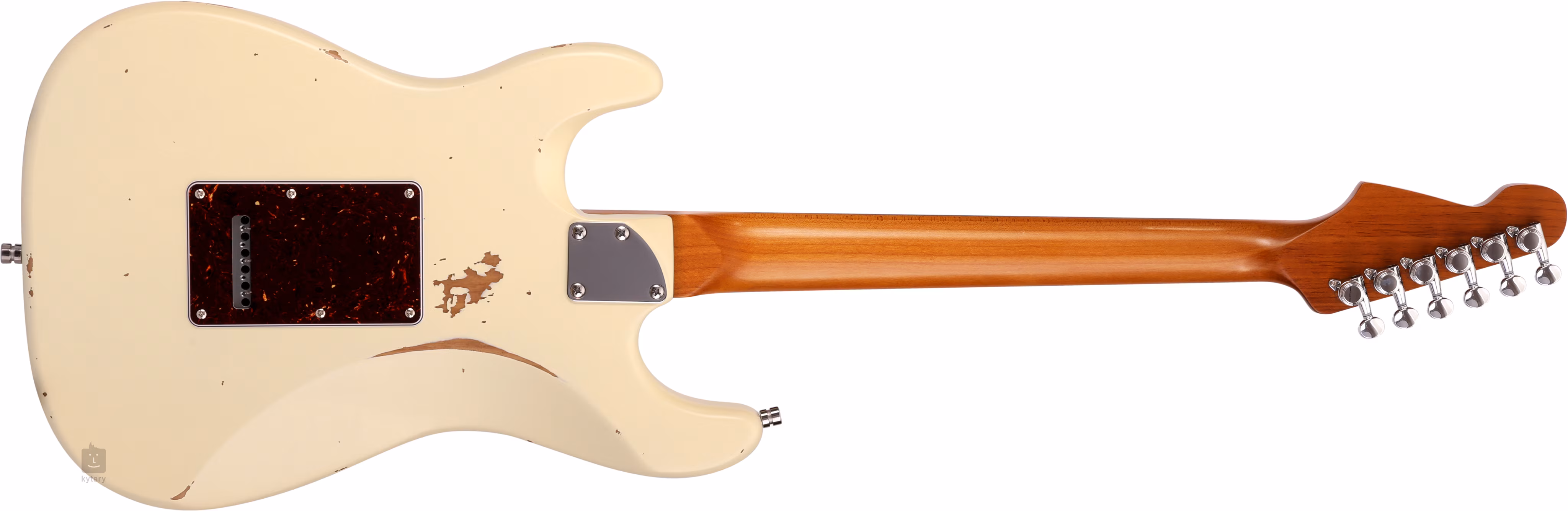 Konfigurácia HSS ručne vinutých snímačov s magnetmi Alnico V dodáva gitare klasické čisté tóny ST single-coils a silný zvuk mostového humbuckera. Kontúry zvuku môžete nastaviť pomocou štandardných ovládačov. Struny sú ukotvené na kostenej matici v uzamykateľných ladiacich mechanikách s prevodovým pomerom 1:19 a tremolom. Štýlový povrch podčiarkuje imitácia korytnačieho panciera na chráničom.