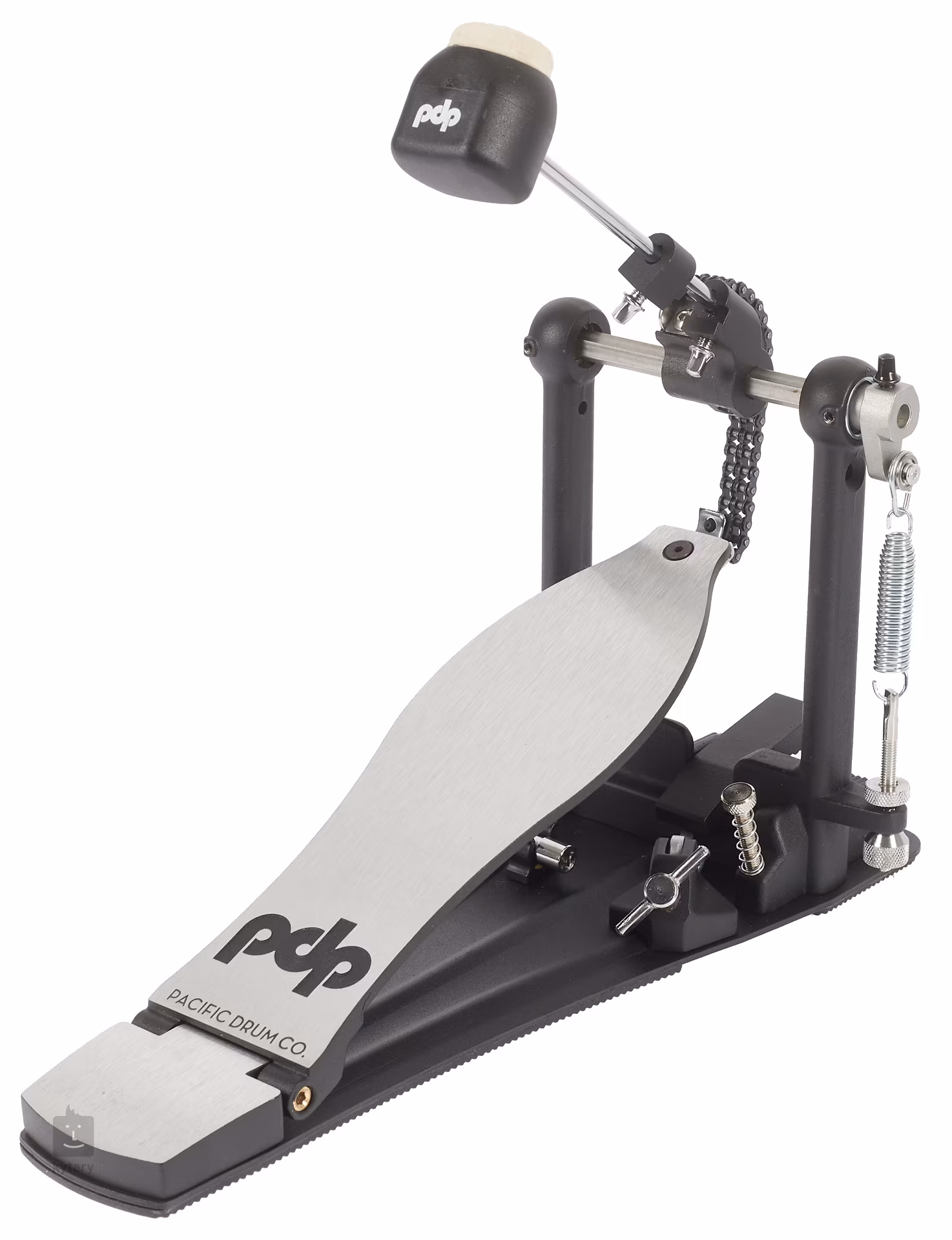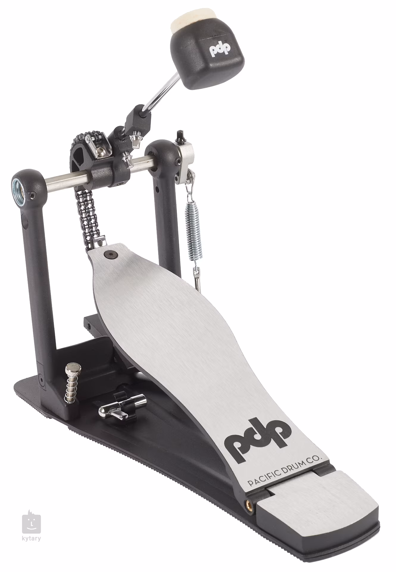 PDSP810 Single Pedal série 800 je jednopedálový pedál pre basový bubon s reťazovým pohonom s dvojitou reťazou, lineárnou vačkou, obojstranným beaterom, nastavením sklonu beateru, hladkým povrchom nožnej dosky s integrovaným závesom s ihlovým ložiskom a pevnou oceľovou základňou.