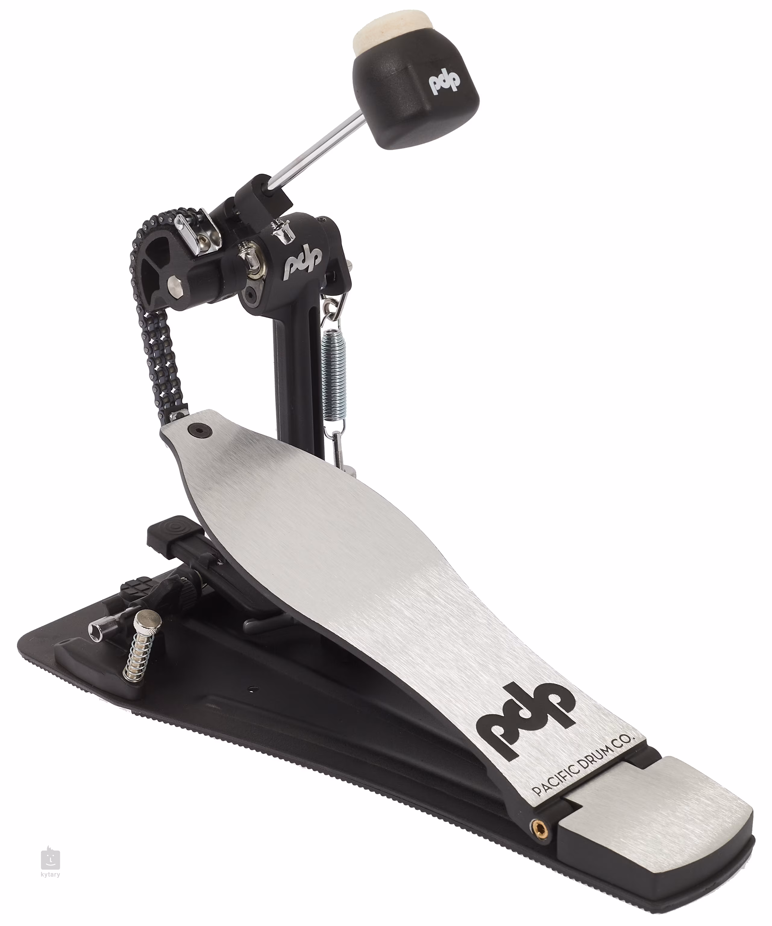 PDSPCO Single Pedal Concept Series je rýchly a citlivý single pedál pre basový bubon s reťazovým pohonom s dvojitou reťazou, lineárnou vačkou, obojstranným beaterom, nastavením sklonu beateru, hladkým povrchom nožnej dosky s integrovaným závesom s ihlovým ložiskom a pevnou oceľovou základňou s magnetickým ladiacim kľúčom.