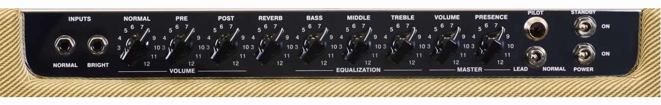 Volume, Bass, Middle, Treble, Reverb, Presence, Post, Pre, Normal