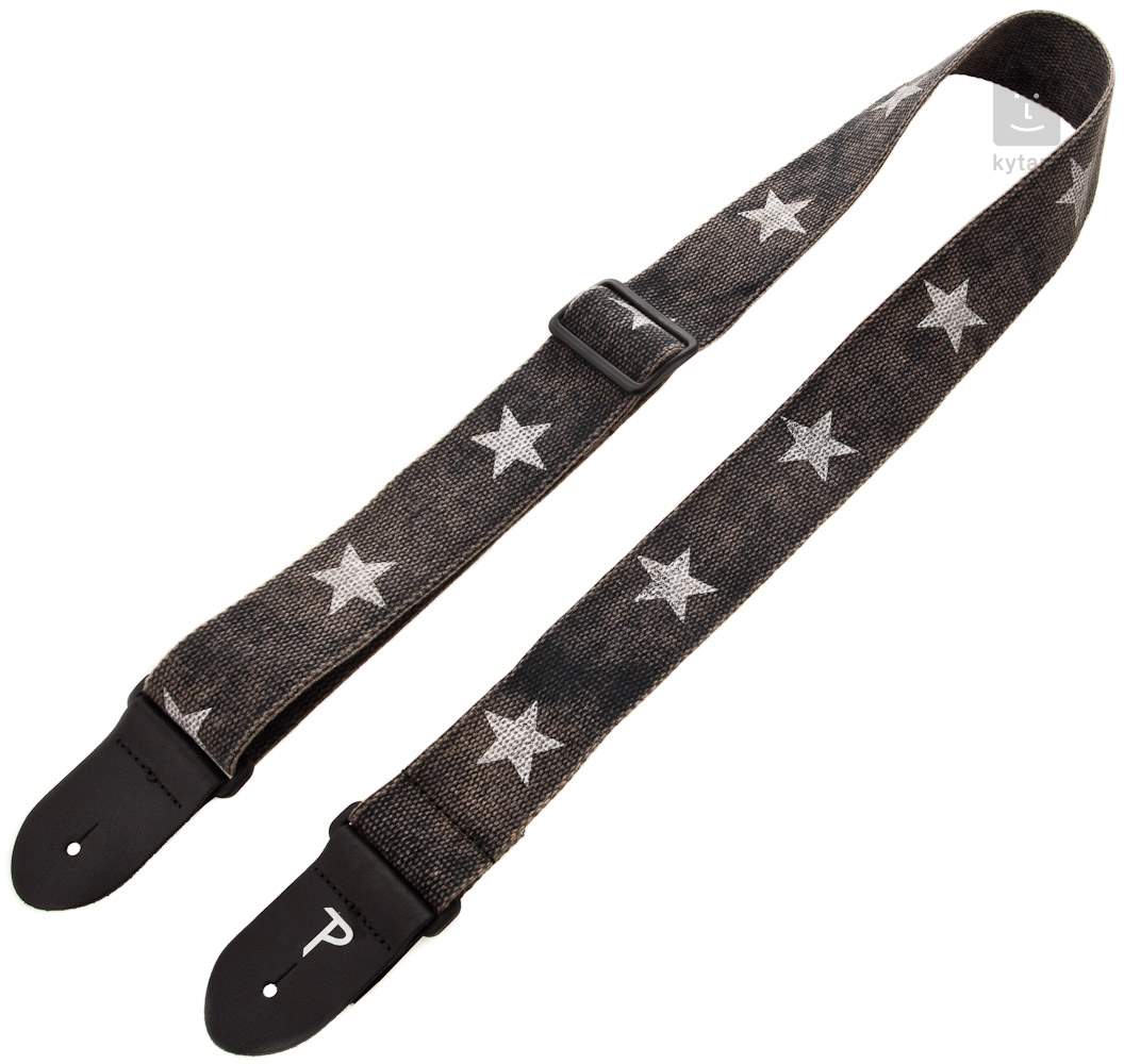 Tento vysokokvalitný remeň je vyrobený z bavlny a kože, ktorá je použitá na koncoch. Bavlnená časť je tu v sivej farbe s bielymi hviezdičkami. Jeho šírka zodpovedá 2 palcom, teda 5,1 centimetra, vďaka čomu sa vám bude pohodlne hrať aj na tie najťažšie nástroje. Dĺžku je možné nastaviť v rozmedzí od 99 do 149 centimetrov.