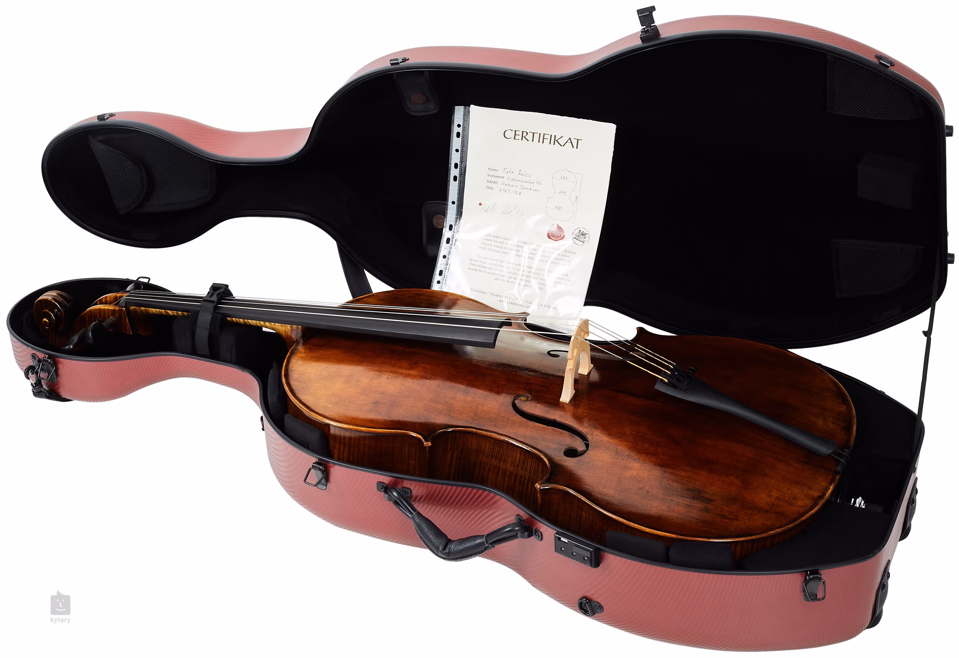 Violončelo vychádza z nástroja z dielne najslávnejšieho cremonského výrobcu huslí Antonia Stradivariho. Nástroj má plný a nosný zvuk, ktorý je vhodný na sólovú hru.