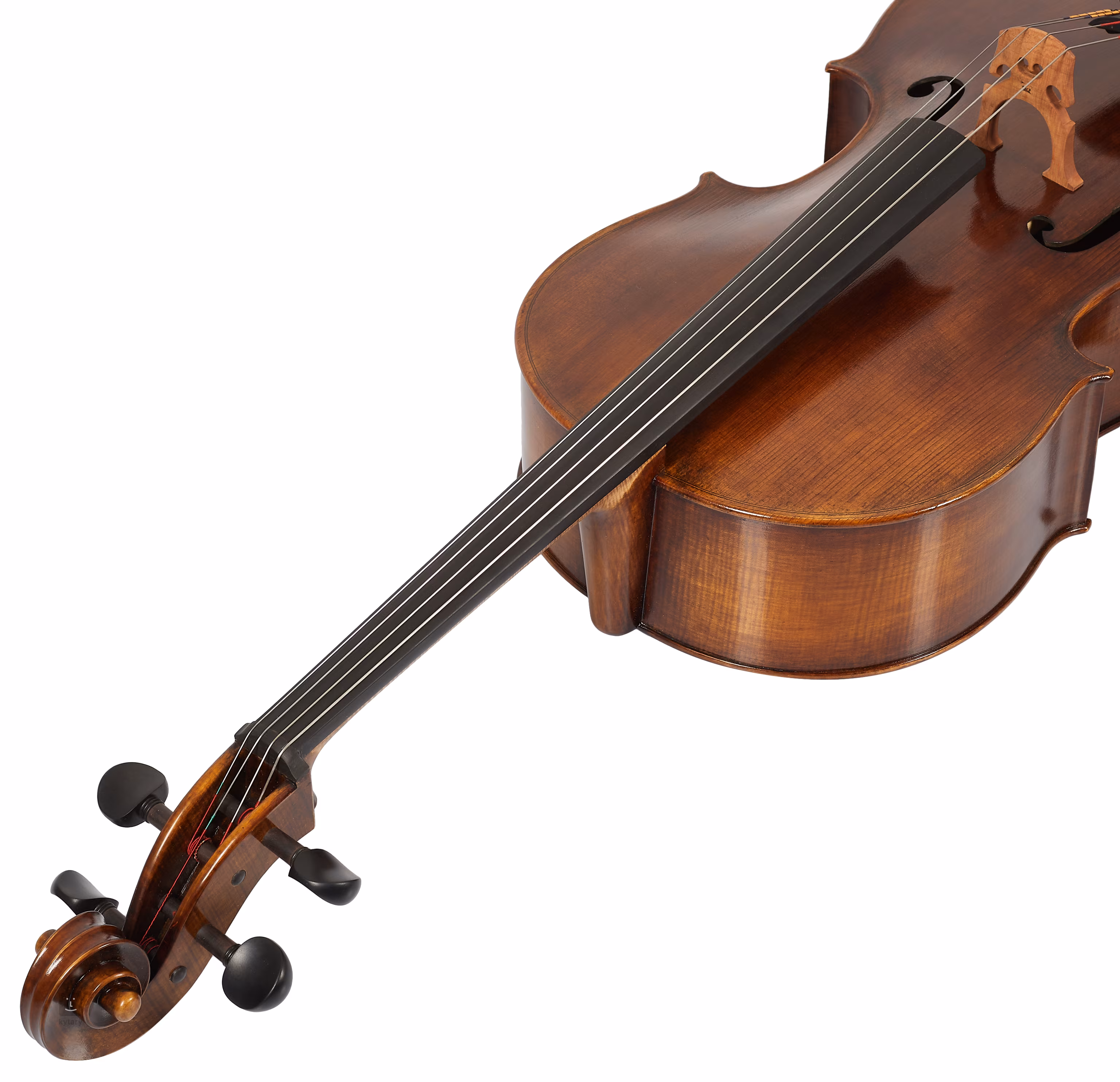 Predlohou pre konštrukciu bol nástroj benátskeho majstra Domenica Montagnana. Vrchná doska je vyrobená z výberového alpského smreka. Použitá doska bola sušená na vzduchu podľa tradičného prírodného procesu. Tento proces, ktorý trvá mnoho rokov až desaťročí, zaručuje nástroju nielen úžasné zvukové vlastnosti, ale aj stabilitu vlhkosti a teploty. Javorová zadná doska, krk a luby sú vyrobené zo silne dyhovaného bosnianskeho javora. Belgický model hlavy Milo Stamm Royal, palisandrový hmatník, struny so zabudovanými ladičkami a špeciálne ladený karbónový hrot dotvárajú nástroj do jedinečného celku.