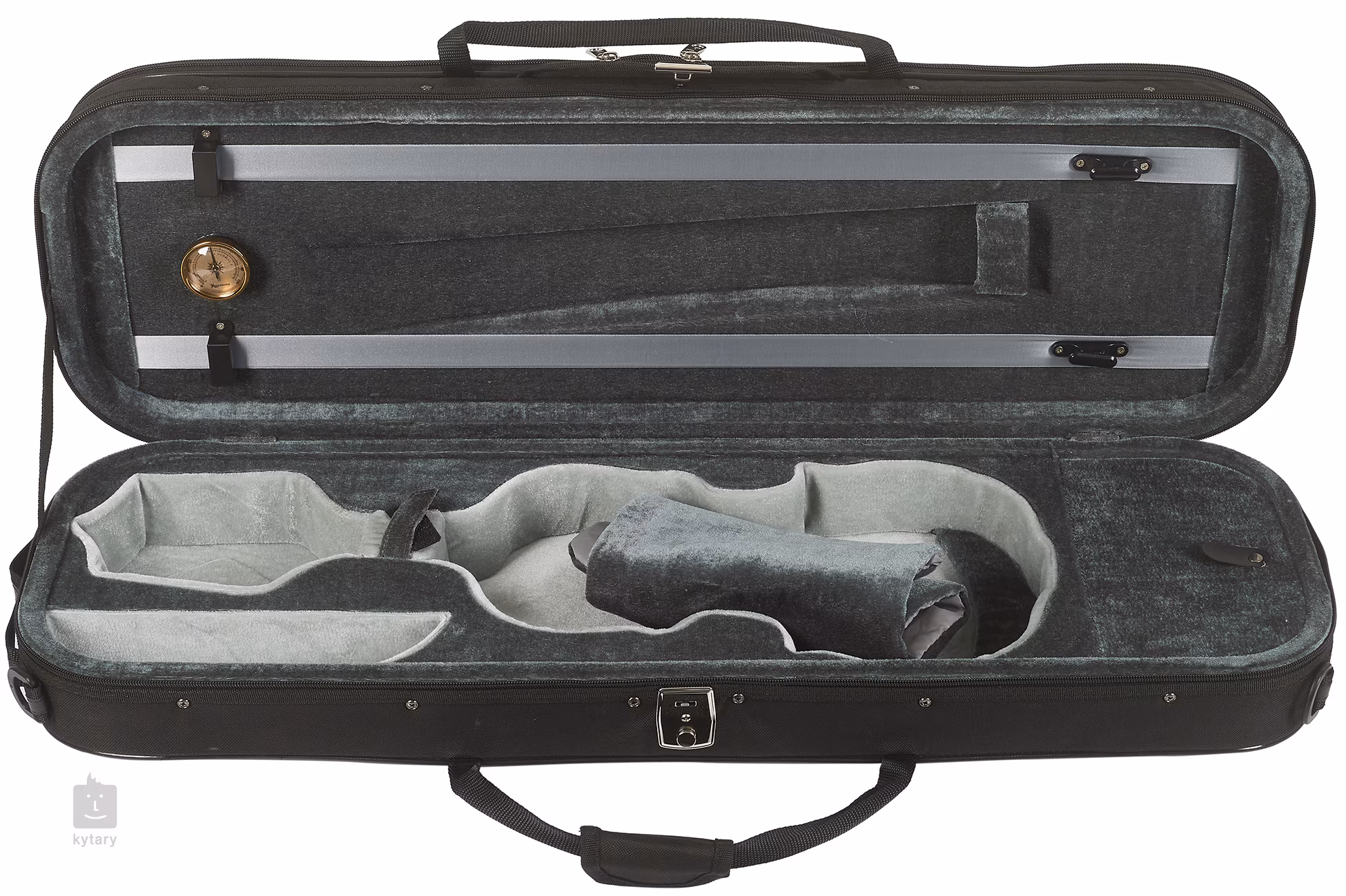 Kvalitné husľové puzdro od obľúbenej slovenskej firmy Dowina. Materiál ABS sa postará o ochranu vášho nástroja a navyše má veľkorysý priestor na príslušenstvo. Na prednej strane sa nachádza väčšie vrecko vhodné napríklad na noty a vo vnútri nájdete jednu uzatvárateľnú priehradku, do ktorej sa ľahko zmestia ladičky, dusítka, náhradné struny alebo kalafuna a dva držiaky na sláčik. Najväčším prínosom je však zabudovaný vlhkomer, ktorý kontroluje, či je váš drahocenný nástroj uložený v správnom prostredí.