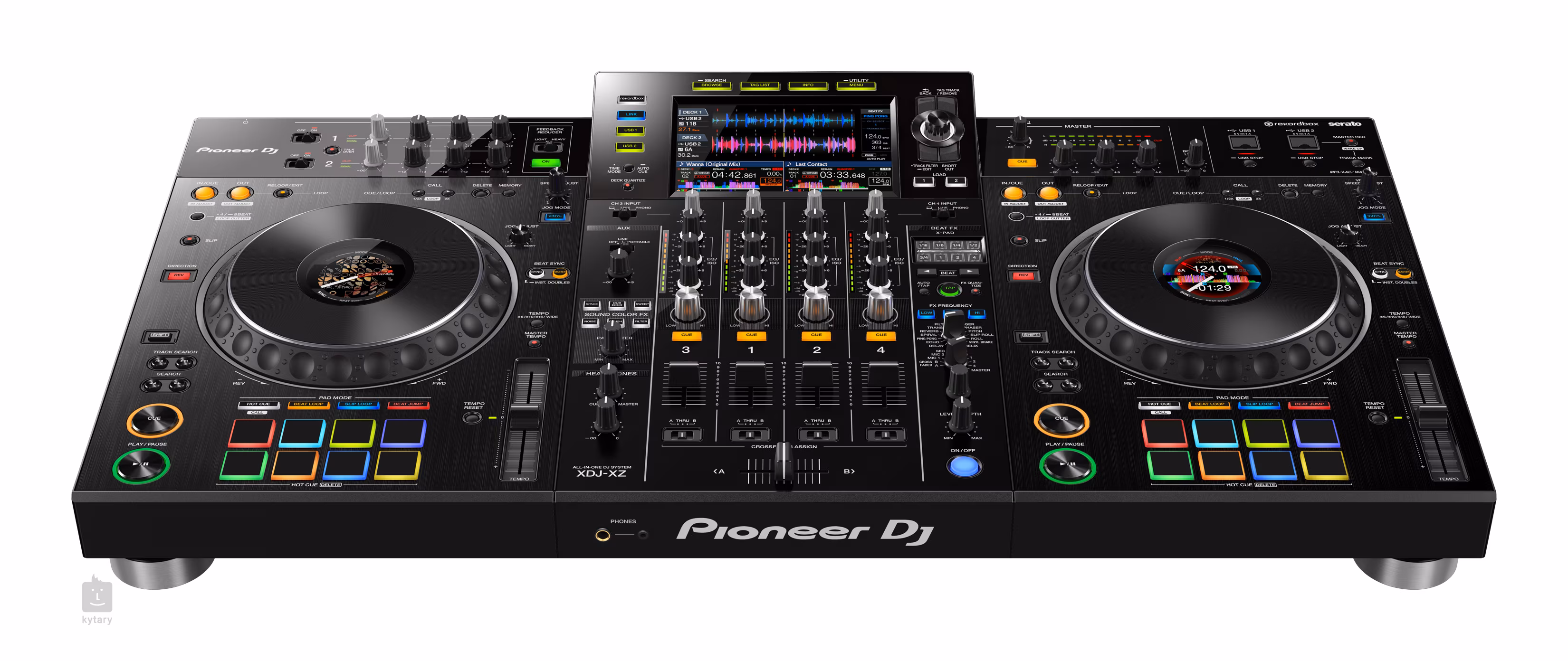 Hlavnou prednosťou XDJ-XZ je prehľadný sedempalcový dotykový LCD displej, ktorý zobrazuje podrobný priebeh skladieb a ďalšie nastavenia mixážneho pultu. Okrem toho na prednom paneli nájdete intuitívny ovládací panel, dvojicu koliesok Jog na efektné scratchovanie a ovládanie ďalších efektov alebo šestnásť Performance padov, ktoré oživia vaše skladby.
