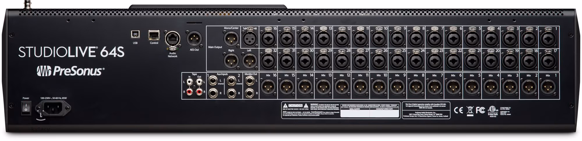 Digitálny mixážny pult a nahrávač StudioLive 64S rozširuje tretiu generáciu série StudioLive a podobne ako jeho predchodcovia je určený pre štúdiovú prácu aj živý zvuk. Kompletne prepracované spracovanie signálu ponúka ekvalizér a kompresiu v retro štýle na každom kanáli. K dispozícii je 32 digitálne ovládaných mikrofónnych predzosilňovačov s možnosťou ukladania, 33 motorizovaných faderov a integrovaný slot na SD karty pre viacstopové nahrávanie, prehrávanie a virtuálne zvukové kontroly. Hudobníci v štúdiu alebo na pódiu môžu mať plnú kontrolu nad svojimi monitormi pomocou aplikácie QMix pre smartfóny. Celý systém je možné ovládať aj z PC/MAC alebo tabletu s operačným systémom Windows alebo iOS. Predzosilňovače XMAX s digitálnym ovládaním a možnosťami ukladania Integrované mikrofónne predzosilňovače XMAX triedy A ponúkajú skvelý zvuk pre živé aj štúdiové použitie. Vysoká headroom (rozsah hlasitosti) a nízka úroveň šumu vedú k čistému a brilantnému zvuku, ktorý je bežný v štúdiu, ale nie je taký bežný v živých zvukových konzolách. Nastavenia predzosilňovača sú úplne digitálne s možnosťou uloženia a vyvolania, čo je ideálne napríklad pre opakované zvukové kontroly s tou istou kapelou. Flex Mixes vám umožňuje nastaviť ľubovoľný počet vrstiev pre mixovanie. Flex Mixes je úplne nová funkcia, ktorá vám umožňuje flexibilne prispôsobiť mixér pre vašu aktuálnu aplikáciu alebo projekt. Flex Mixes možno nastaviť ako auxes, podskupiny alebo maticové mixy, v závislosti od potrieb konkrétnej show alebo projektu. Potrebujete veľký počet rôzne nakonfigurovaných monitorovacích mixov pre väčší počet hudobníkov? Žiaden problém, môžete vytvoriť až 16 aux sendov, ako aj až 16 podskupín alebo maticových mixov. Bezdrôtové ovládanie cez Wi-Fi Integrovaná bezdrôtová sieť StudioLive 32 umožňuje kompletné diaľkové ovládanie konzoly z počítačov, mobilných telefónov a tabletov. Svoj mix môžete skontrolovať a opraviť odkiaľkoľvek v sále alebo kontrolnej miestnosti pomocou aplikácie UC Surface pre počítače a tablety s operačným systémom Windows, macOS a iOS. Monitorové mixy je potom možné ovládať pomocou aplikácie QMix zo smartfónov s operačným systémom iOS a Android. Každý hudobník si môže nastaviť svoj vlastný monitorový mix, napr. v slúchadlách. Kompletne prepracovaný ekvalizér, kompresor a spracovanie efektov StudioLive ponúka 4 nezávislé efektové procesory, ktoré možno použiť na reverb, delay a efekty. Efekty možno aplikovať na jednotlivé kanály, ako aj na monitorovacie zbernice a podskupiny. Vstavané efekty možno použiť aj ako vložky na až 4 individuálnych kanáloch. Každý kanál má vlastný ekvalizér a dynamický procesor.