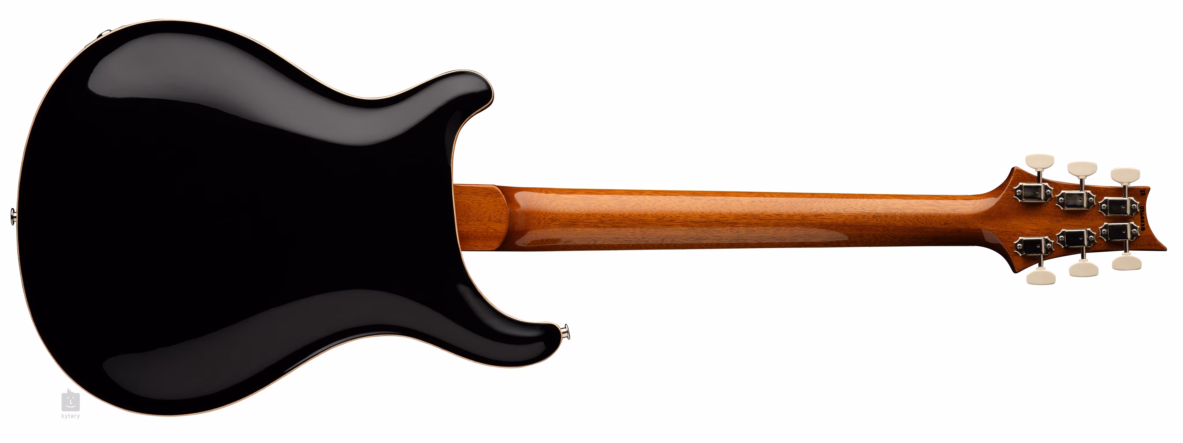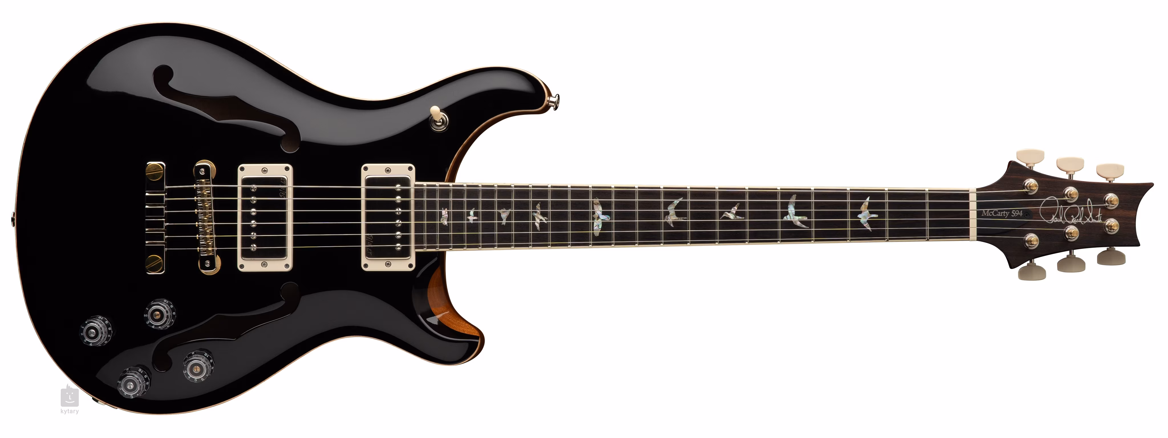 McCarty 594 Hollowbody II Black Top & Back (Natural Sides) je nástroj s dušou vintage gitár, tradičným dizajnom tela PRS a skvelými hernými vlastnosťami. Telo gitary je zložené z čiernej javorovej prednej a zadnej dosky a mahagónových lubov. Mahagónový krk s profilom Pattern Vintage je prilepený k palisandrovému hmatníku s dvadsiatimi dvoma pražcami. Kratšia menzúra gitary (625 mm) je samozrejme stelesnená v označení modelu McCarty 594 (24,594 palca). Orientáciu na hmatníku uľahčujú značkové PRS pozičné značky v podobe perleťových siluet vtákov.
