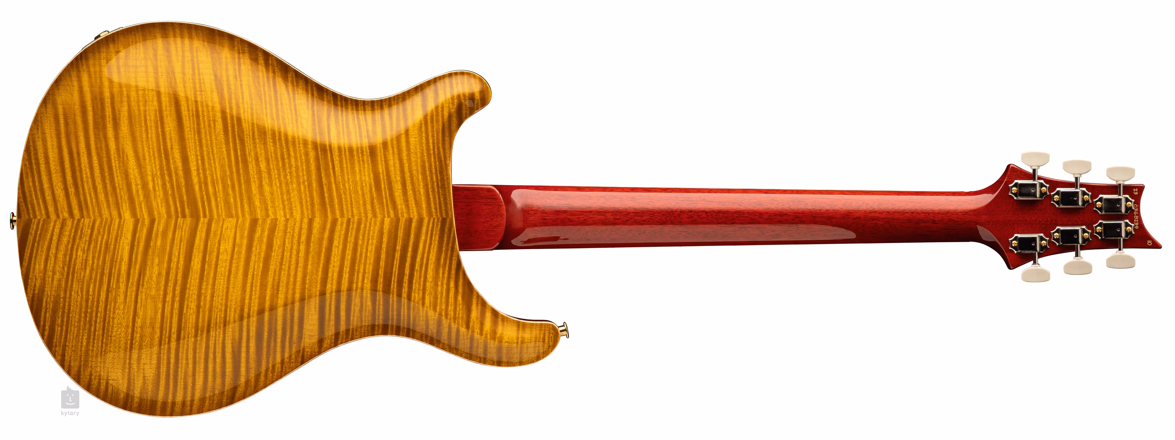 McCarty 594 Hollowbody II McCarty Sunburst je nástroj s dušou vintage gitár, tradičným dizajnom tela PRS a skvelými hernými vlastnosťami. Telo gitary je zložené z prednej a zadnej dosky z figurovaného javora a lubov z mahagónu. Mahagónový krk s profilom Pattern Vintage je prilepený k palisandrovému hmatníku s dvadsiatimi dvoma pražcami. Kratšia menzúra gitary (625 mm) je samozrejme stelesnená v označení modelu McCarty 594 (24,594 palca). Orientáciu na hmatníku uľahčujú značkové PRS pozičné značky v podobe perleťových siluet vtákov.