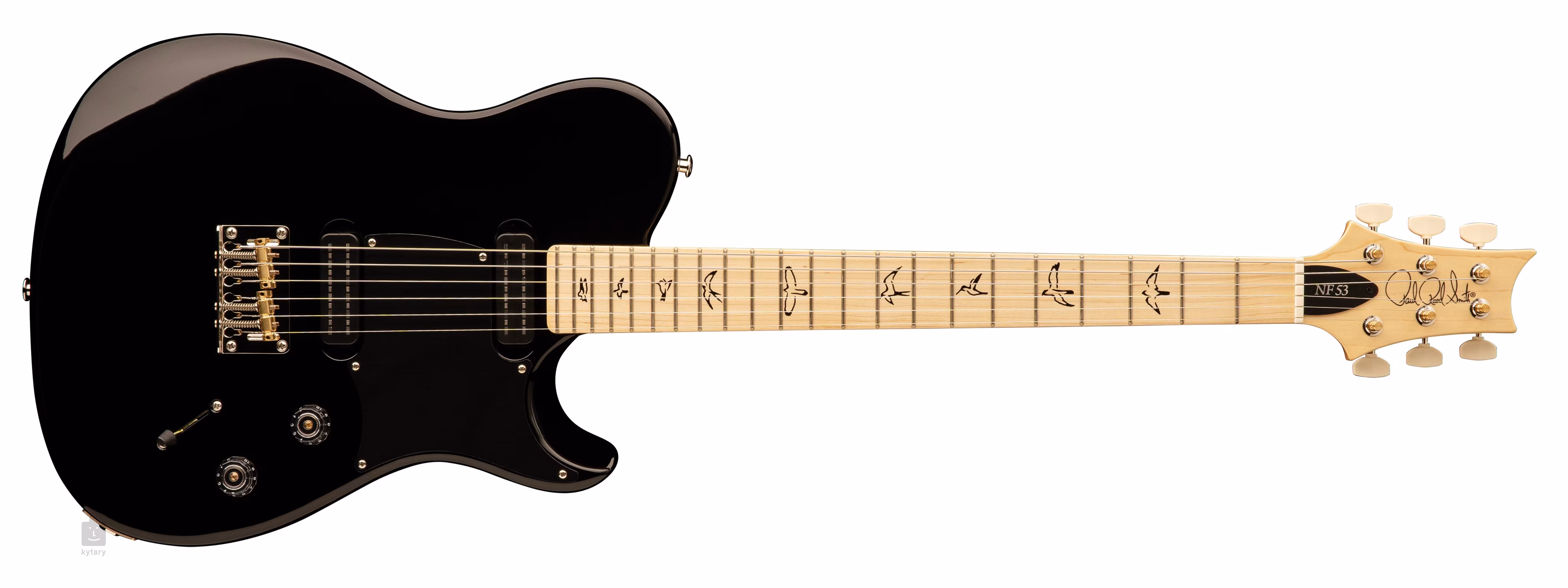Telo gitary NF 53 Black je vyrobené z bahenného jaseňa. Pohodlie pri hre zaručuje skrutkovaný javorový krk s profilom Pattern 53, ktorý ponúka aspekty profilov Pattern Vintage a Pattern Regular a je o niečo užší pri nultom pražci ako bežný štandard PRS. Orientáciu na javorovom hmatníku uľahčujú polohové značky v podobe siluet vtákov.