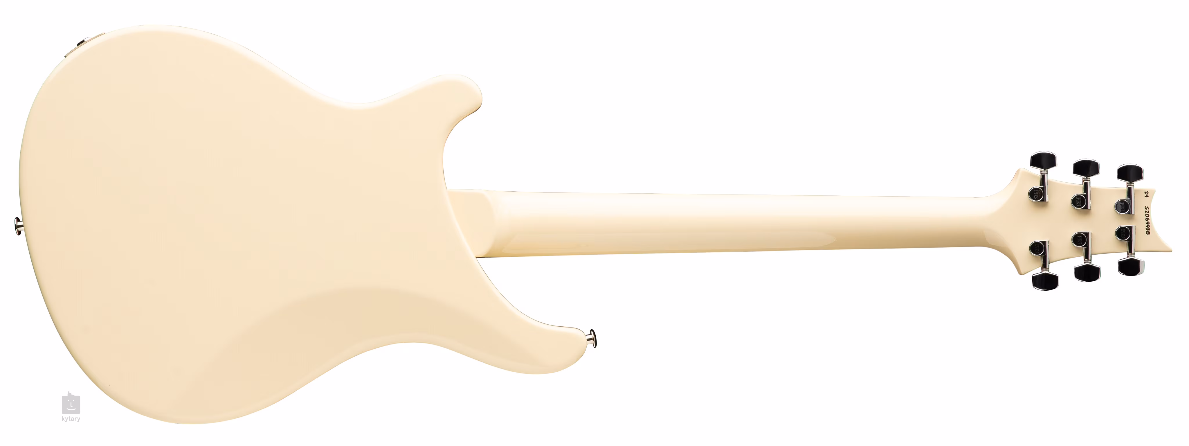 Mahagónové telo gitary S2 Vela Antique White zdobí lesklý nitrolak a možnosť výberu farby. K mahagónovému krku s profilom Pattern Regular je prilepený palisandrový hmatník s dvadsiatimi dvoma pražcami. Orientáciu na hmatníku uľahčujú polohové značky v podobe perleťových siluet vtákov.