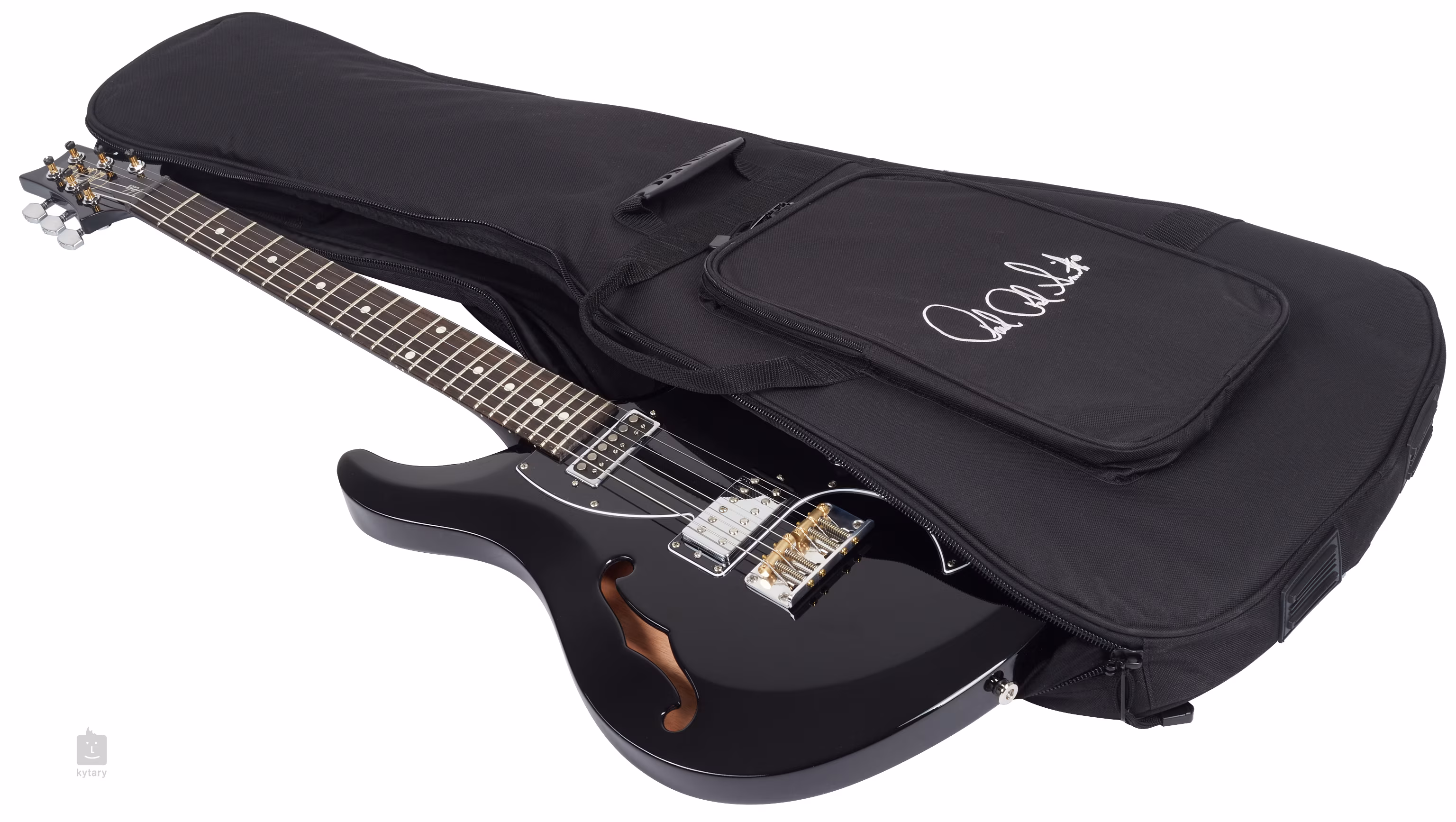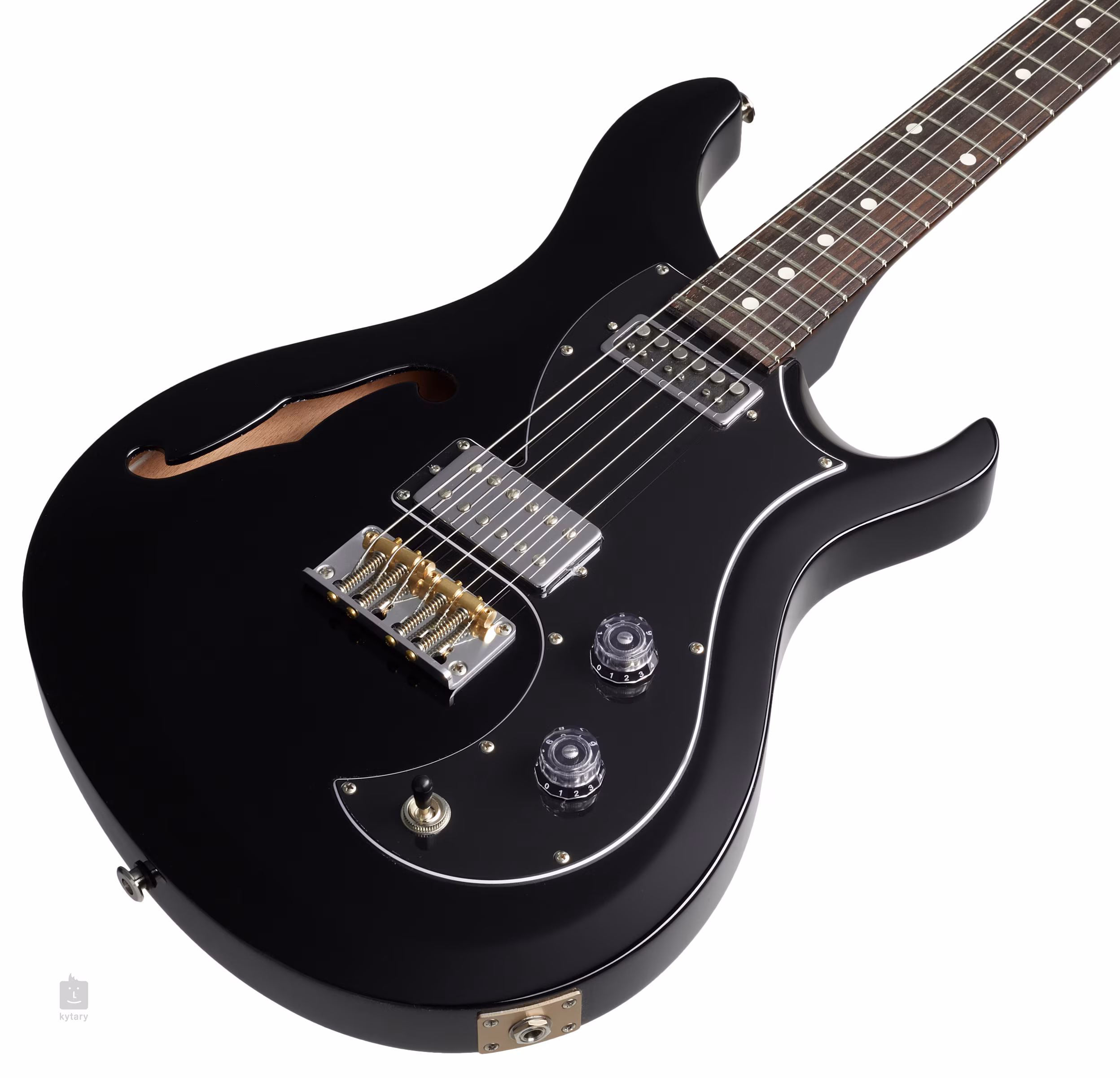 Potenciometer bol nahradený zlatým skrutkou namiesto striebornej (pozri foto). Produkt vykazuje známky opotrebenia v dôsledku častého používania alebo dlhodobého vystavenia v obchode (pozri foto). Neoriginálna kartónová krabica a výplne. Vela Semi-Hollow je polodutá gitara s polodutou konštrukciou a originálnym tvarom tela PRS offset. Určite osloví hudobníkov, ktorí majú radi zvuk a hrateľnosť gitár PRS, ale uvítali by aj nástroj s elegantným dizajnom a celkovo príjemným vintage charakterom. Polodutá konštrukcia mahagónového tela zdôrazňuje akustické vlastnosti nástroja. Mahagónový krk s profilom Pattern Regular je vybavený palisandrovým hmatníkom s dvadsiatimi dvoma pražcami. Polohové bodky uľahčujú orientáciu po jeho povrchu. Kombinácia humbuckera spoločnosti v pozícii mostíka a single-coil snímačov PRS Type-D dodáva gitare veľmi čistý a výrazný tón, ktorému nechýba krásny „twang“ – gitaru tak možno použiť v širokej škále hudobných štýlov (od rocku po country). Charakter zvuku je možné nastaviť pomocou potenciometra hlasitosti, ovládača tónu a trojpolohového prepínača snímačov. Funkcia push/pull ovládača tónu umožňuje rozdelenie cievok humbuckera, čím sa dosiahne čistý single-coil zvuk. Stabilitu ladenia a dobrý sustain zaručujú struny ukotvené v pevnom mostíku PRS Plate Style s mosadznými sedlami a uzamykateľnými ladiacimi mechanikami, ktoré zabraňujú nežiaducemu pohybu strún. Gitara sa dodáva s puzdrom. Gitary PRS z dielne Paula Reeda Smitha sú považované za jedny z najuniverzálnejších a najspoľahlivejších nástrojov, aké kedy boli vyrobené. Vďaka skvelému zvuku a pohodlnosti pri hraní si ich obľúbili okrem iných aj Carlos Santana a Mark Tremonti. Okrem osvedčených klasických modelov ponúka značka aj modely pre ľavákov, sedemstrunové gitary, barytónové a poloduté gitary a signature modely od slávnych gitaristov. Nástroje označené S2 sa vyrábajú v Stevensville v USA.