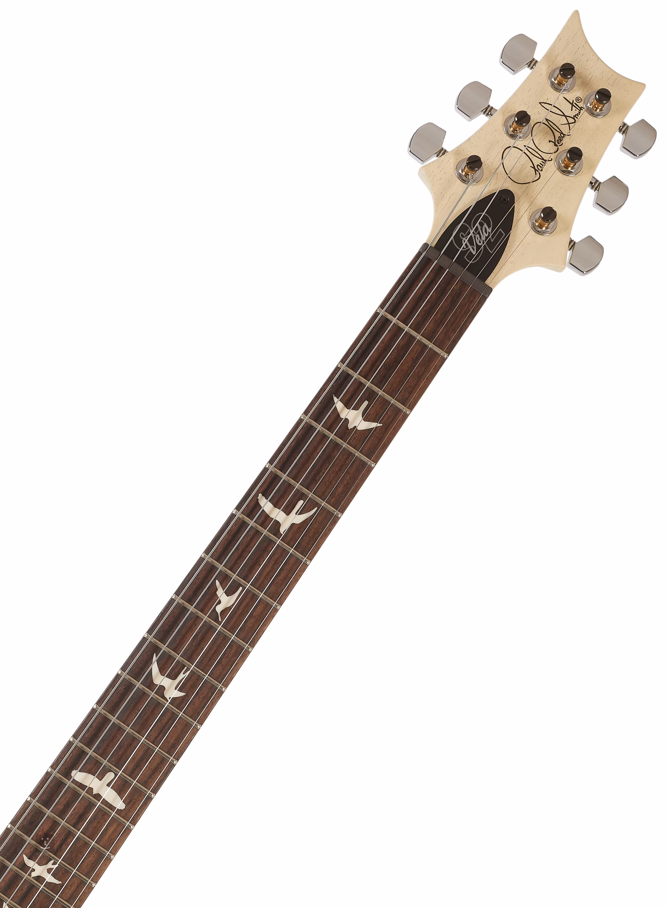Stabilitu ladenia a dobrý sustain zaručuje uchytenie strún v masívnych mosadzných sedlách PRS Plate Style a uzamykateľné ladiace mechaniky, ktoré zabraňujú nechcenému pohybu strún. Gitara sa dodáva v prémiovom gig bagu.