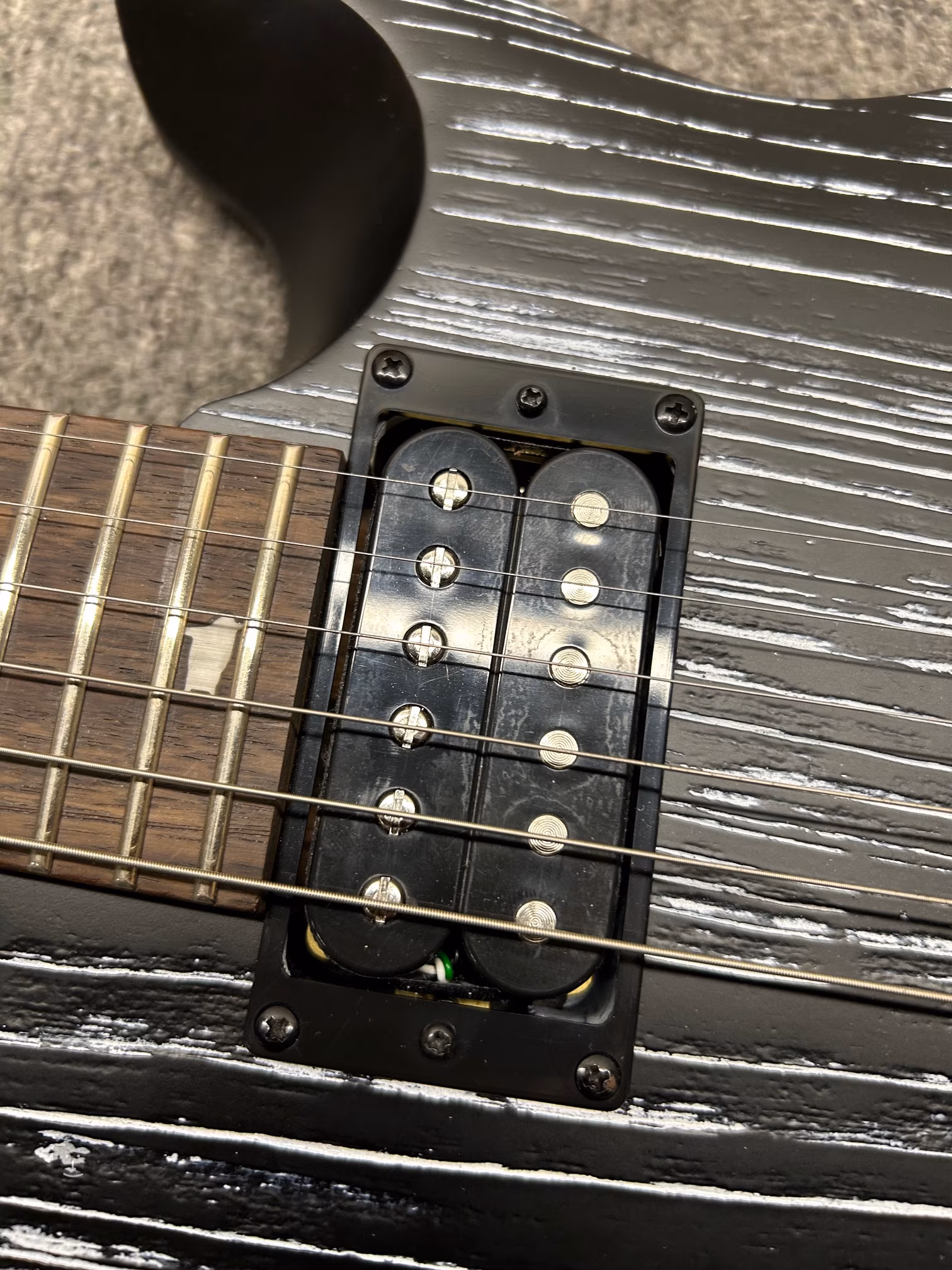 Mahagónové telo elektrickej gitary SE CE 24 LTD Sandblasted WH z limitovanej edície zdobí vrchná doska z jaseňa so štruktúrou dreva zvýraznenou pieskovanou povrchovou úpravou. Vyrezávanie Shallow Violin približuje kvalitu hry nástroja drahším modelom série American Core. Javorový krk s profilom Wide Thin je prilepený k palisandrovému hmatníku osadenému dvadsiatimi štyrmi pražcami. Orientáciu na hmatníku uľahčujú polohové značky v podobe perleťových siluet vtákov.