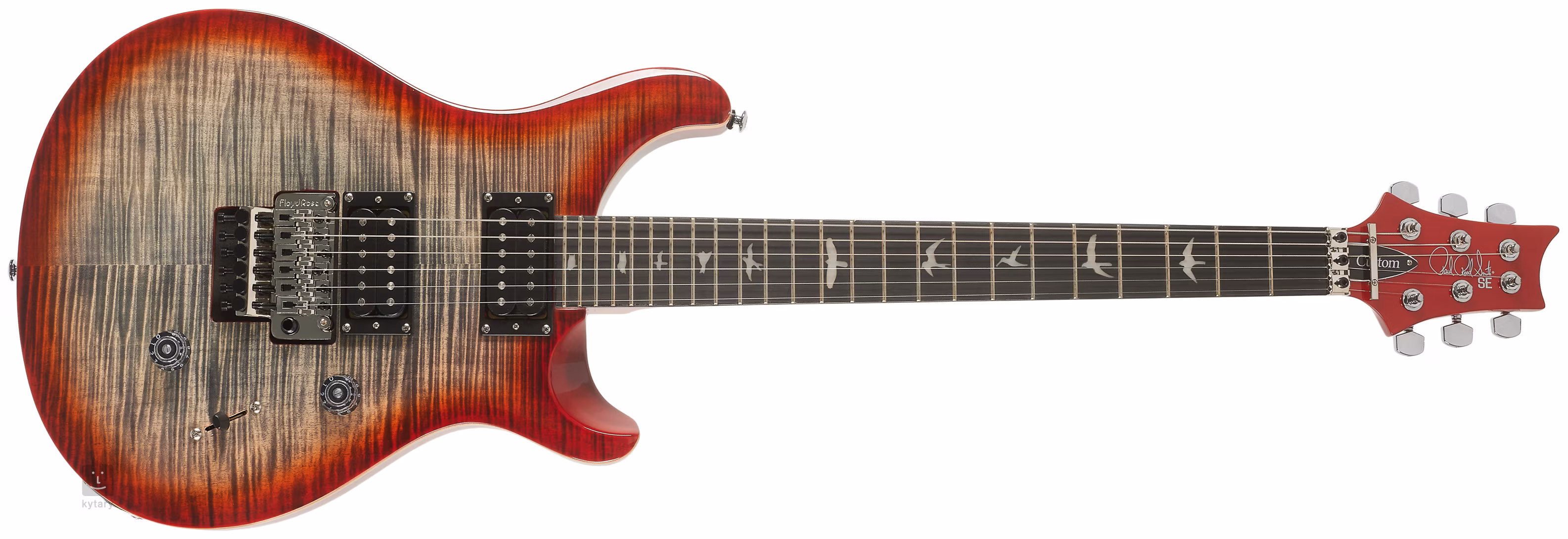 Mahagónové telo modelu SE Custom 24 Floyd Charcoal Cherry Burst zdobí javorová vrchná doska a efektná dyha z fládrovaného javora. Vyrezávanie Shallow Violin približuje kvalitu hry nástroja drahším modelom z radu American Core. Ebenový hmatník s dvadsiatimi štyrmi pražcami je prilepený k javorovému krku s profilom Wide Thin. Orientáciu na hmatníku uľahčujú polohové značky v podobe perleťových siluet vtákov.