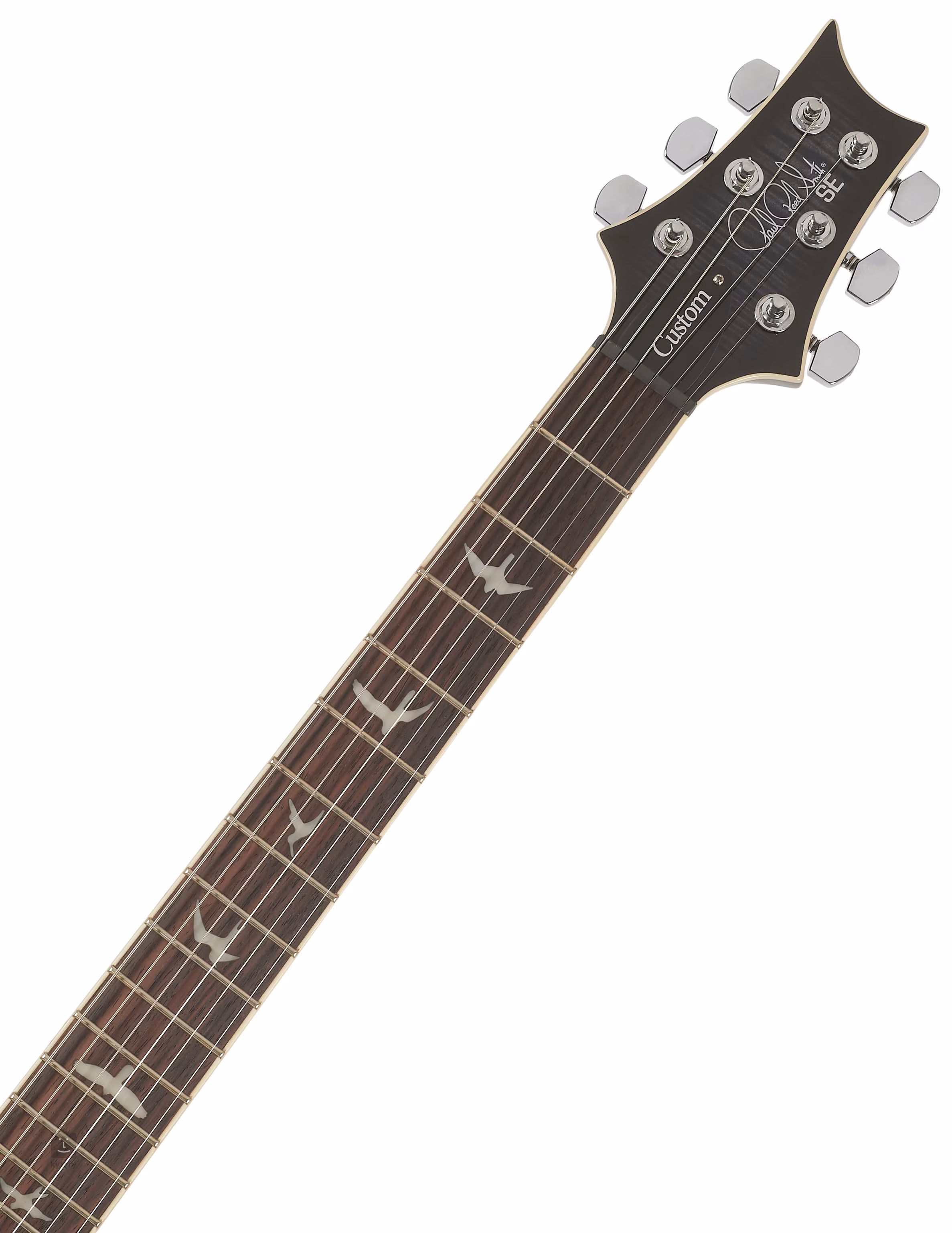 Mahagónové telo modelu SE Custom 24 Semi-Hollow Piezo Charcoal Burst zdobí javorová vrchná doska a efektná dyha z fládrovaného javora. Vyrezávanie Shallow Violin približuje hrateľnosť nástroja kvalitou drahším modelom americkej Core Series. Palisandrový hmatník s dvadsiatimi štyrmi pražcami je prilepený k javorovému krku s profilom Wide Thin. Orientáciu na hmatníku uľahčujú polohové značky v podobe perleťových siluet vtákov.