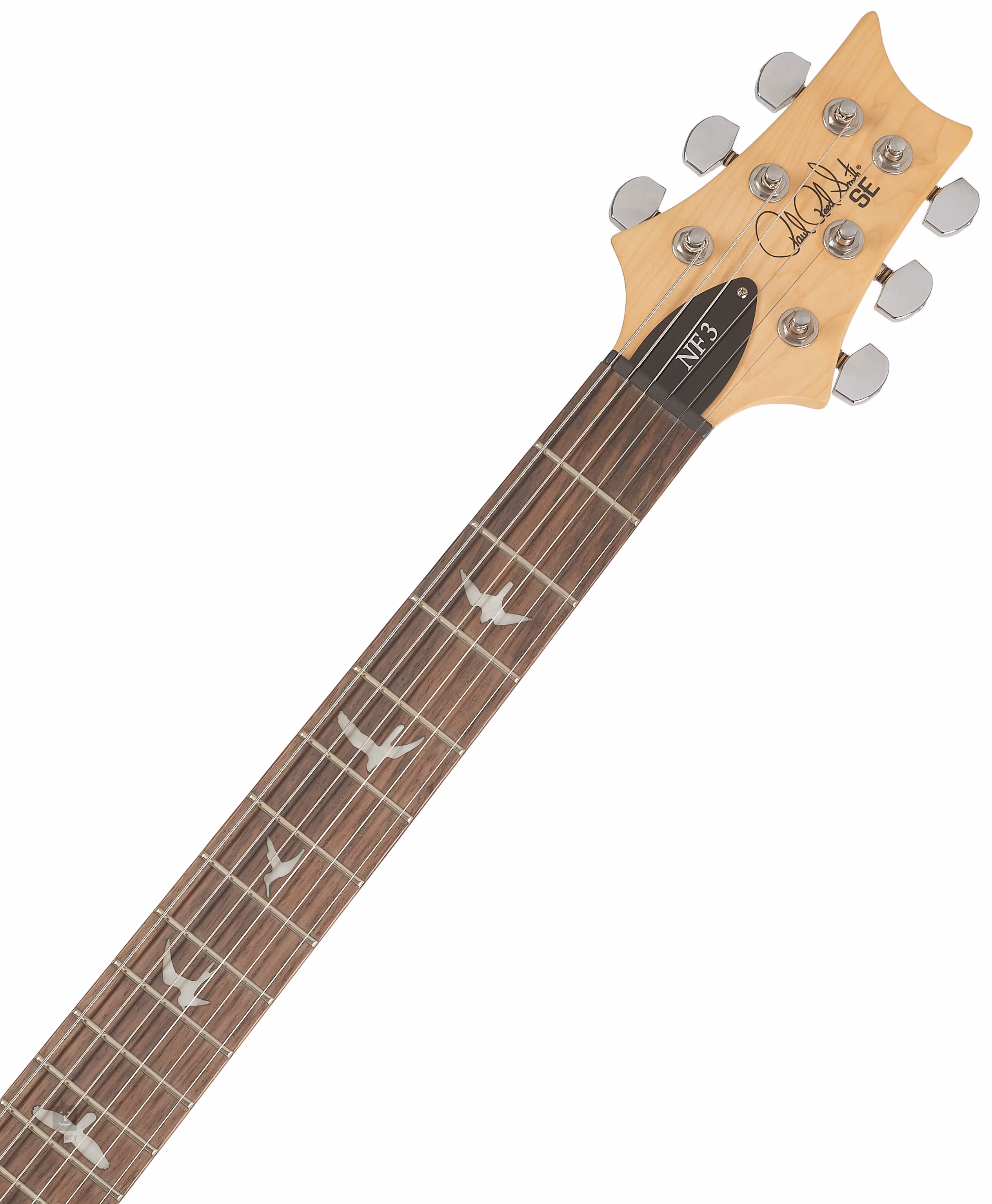 Elektrická gitara PRS SE NF3 z cenovo dostupnejšej série SE ponúka originálny dizajn tela PRS s dvoma výrezmi a kvalitu vyhotovenia, ktorá zodpovedá povesti značky. Ide o zvukovo všestranné a spoľahlivé nástroje, ktoré oceníte na koncertoch a pri štúdiovej práci a v žánroch ako rock, pop, funk, blues, country a jazz.