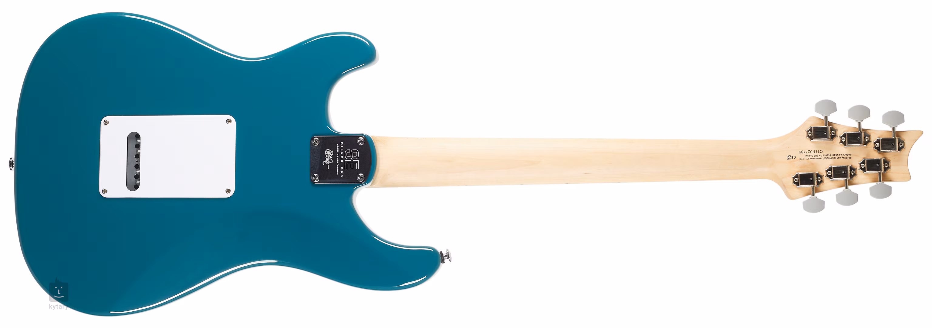Telo PRS SE Silver Sky Maple Nylon Blue je vyrobené z topoľa. Skrutkovaný javorový krk je vybavený originálnym výrezom/profilom 635JM, pričom javorový povrch hmatníka je rozdelený dvadsiatimi dvoma pražcami a polohovými značkami v podobe siluet vtákov.