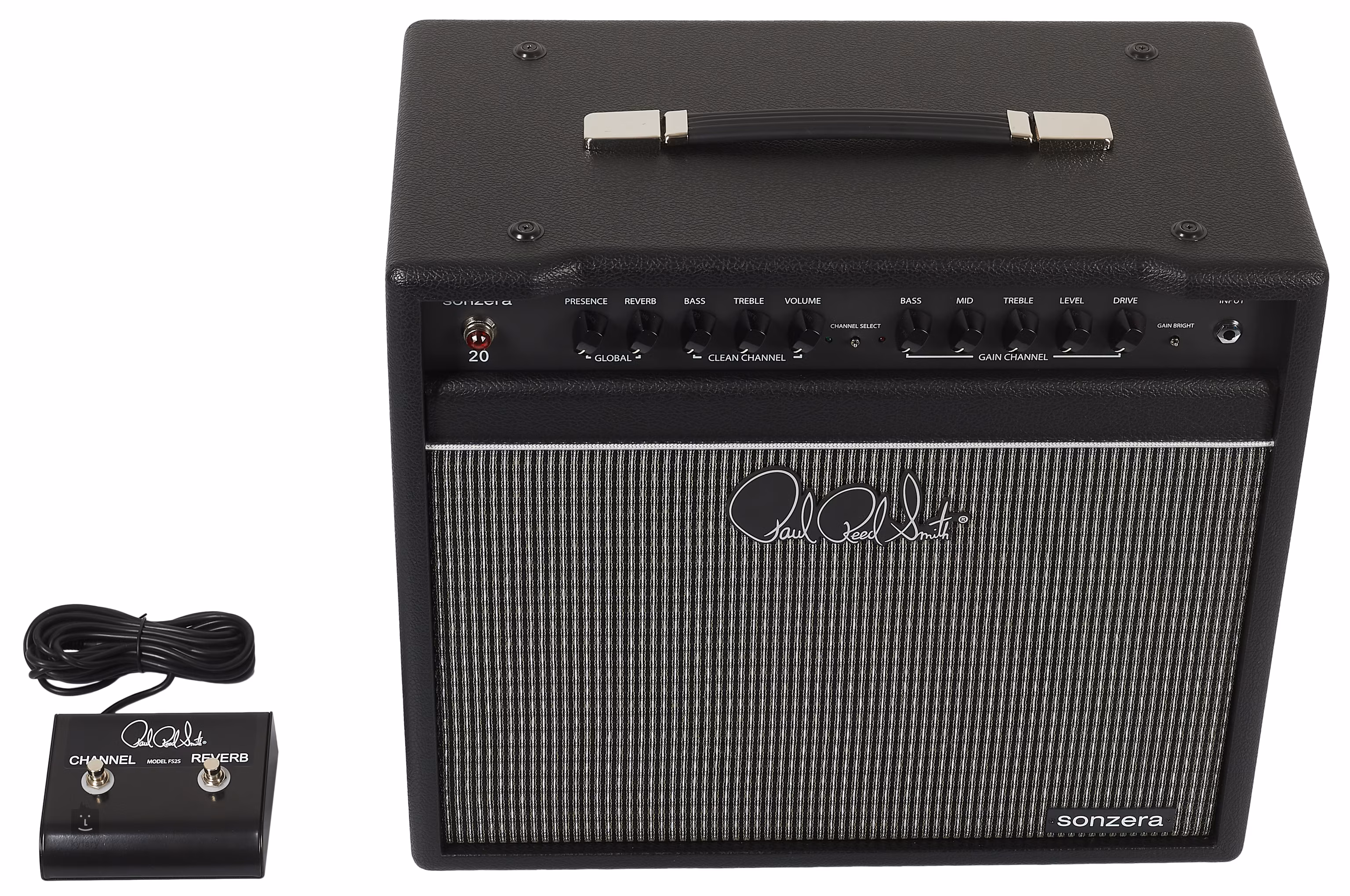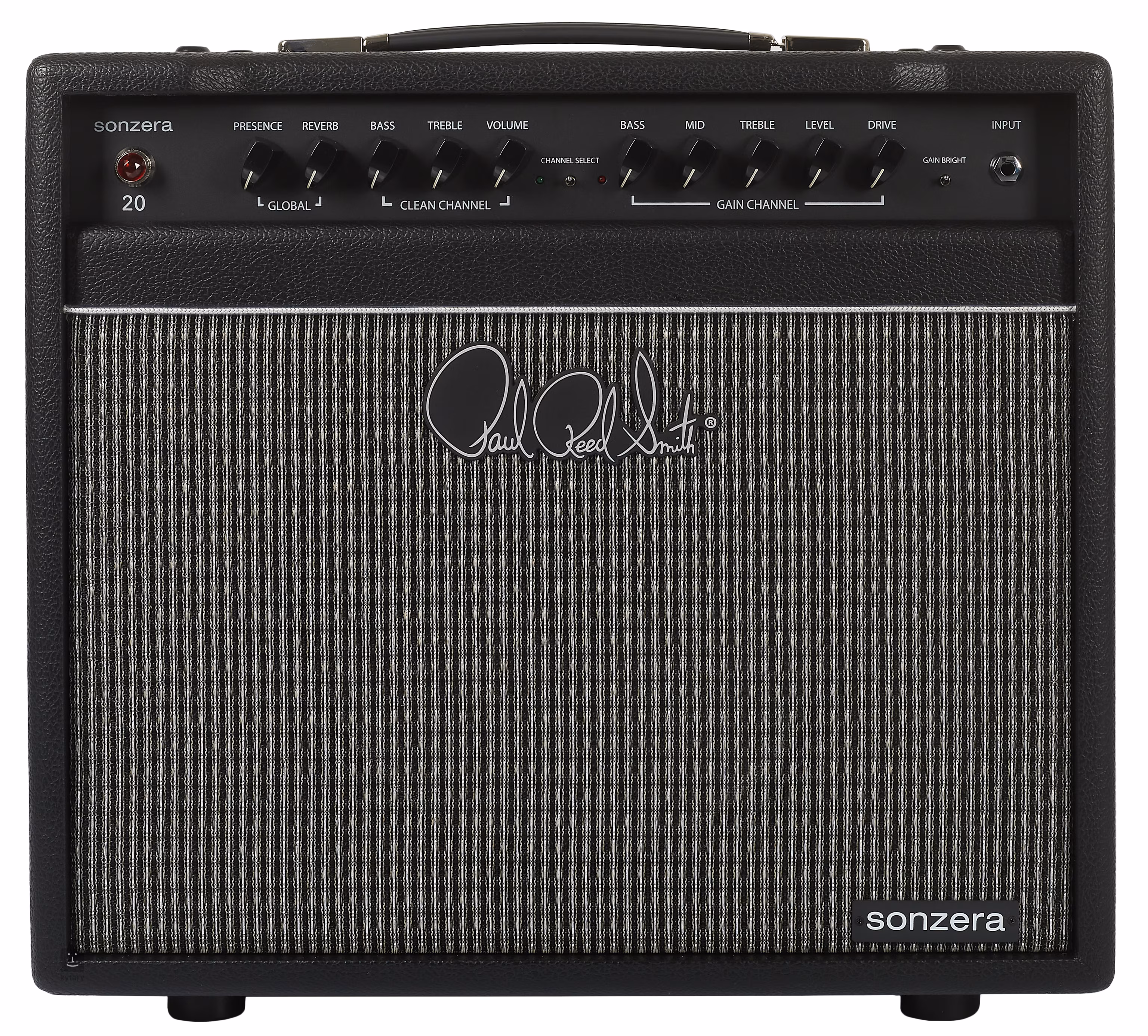 PRS Sonzera 20 Combo je celolampové kombo s výkonom 20 wattov a dvoma kanálmi, ktoré sa dajú prepínať nožným prepínačom a majú nezávislé ovládanie. Čistý kanál ponúka plný zvuk s retro charakterom amerických gitarových zosilňovačov z polovice 60. rokov, zatiaľ čo druhý kanál (gain kanál) môžete použiť na posilnenie čistého kanála alebo na vytvorenie úplne odlišného zvuku (od ľahkého skreslenia po silné skreslenie). Trojpásmový a dvojpásmový ekvalizér kanálov dopĺňa ovládač Presence na zosilňovači a prepínač Bright, ktoré umožňujú nastaviť odozvu vo vyšších frekvenciách a v prípade potreby zosvetliť zvuk zosilňovača.