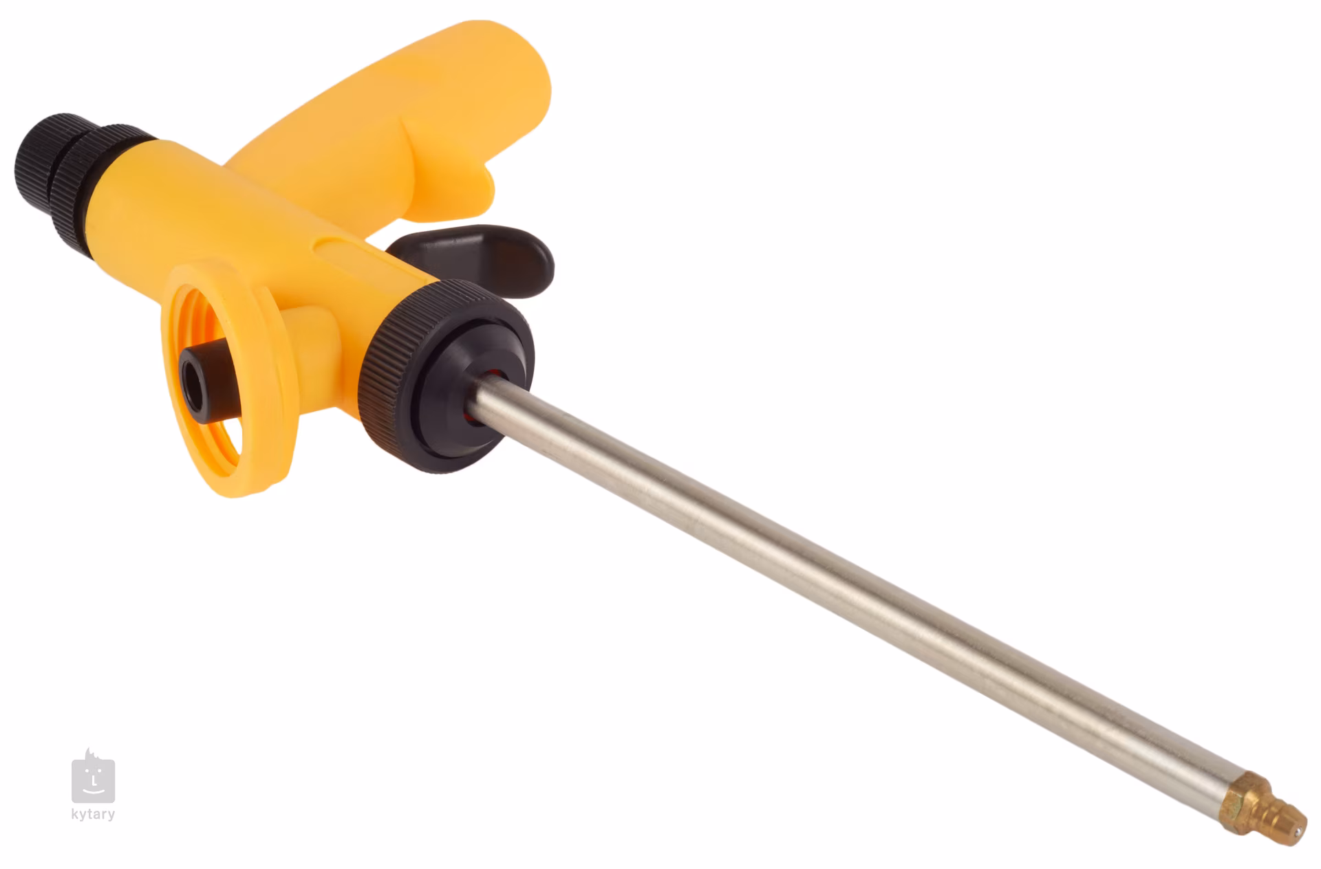 Pištoľ na PU penu s reguláciou prietoku je vhodná pre domácich majstrov a profesionálnych remeselníkov. Telo pištole má robustnú konštrukciu a ergonomickú protišmykovú rukoväť na bezpečné uchopenie.