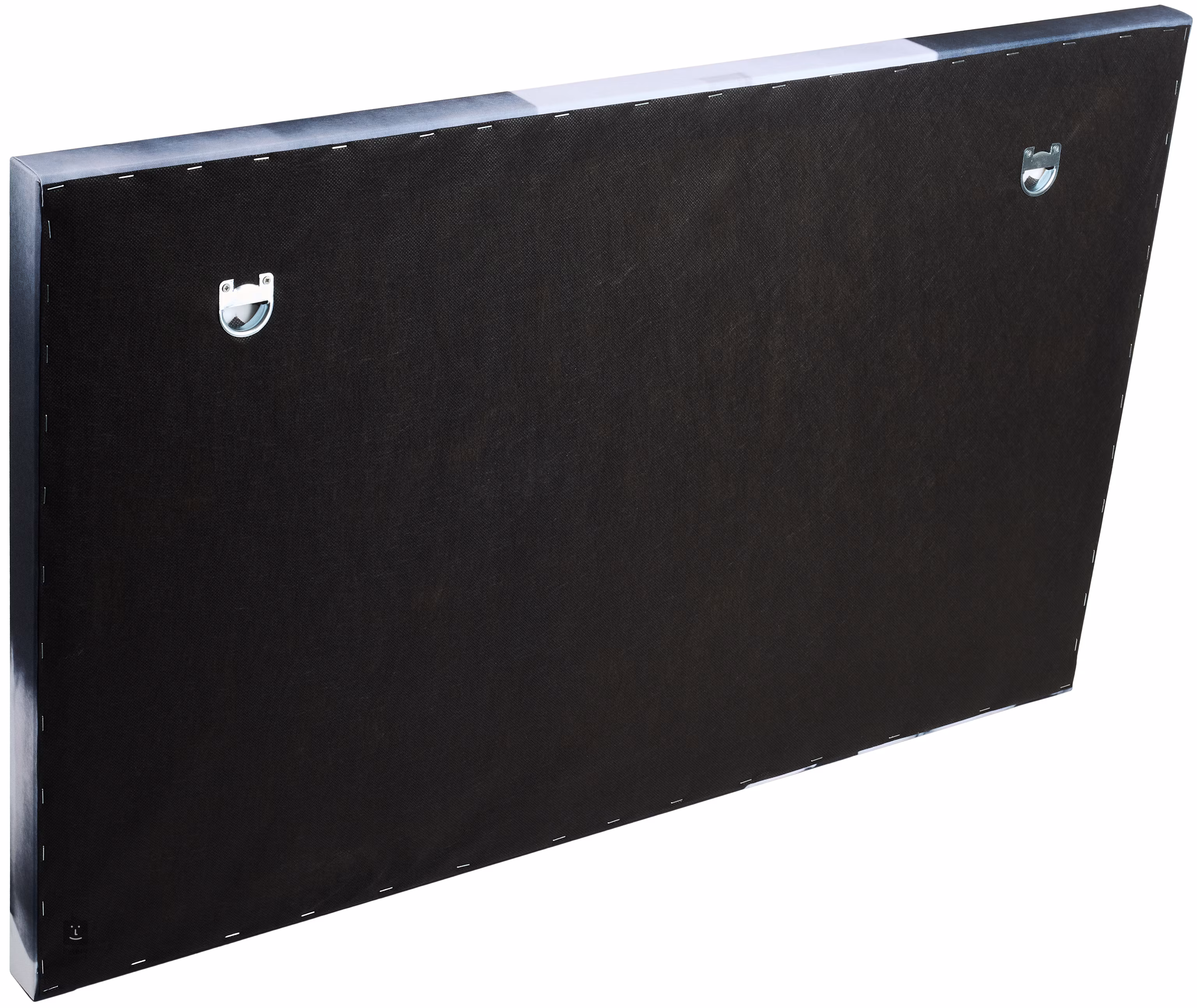 Značka Pyramid vytvořila speciální skladbu dvou typů akustické pěny v dřevěném ránu o tloušťce 30mm, kterou překrývá speciální tištěná, akustická látka. Rohy a hrany tohoto obrazu jsou rovněž potištěné, produkt tím pádem nemá žádnou odkrytou hranu. Závěsná oka jsou na samostatné konstrukci o tloušťce 10mm, aby byla zachována vzduchová mezera mezi zdí a pohltivým materiálem.