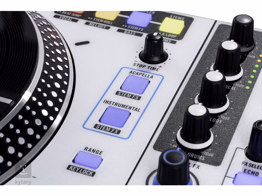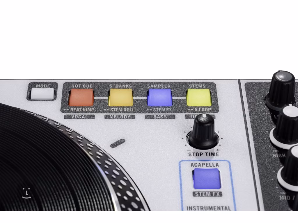 Ovládač je založený na motorizovaných 7,2" platniach s nastaviteľným krútiacim momentom, ktoré dokonale napodobňujú správanie klasického gramofónu. Ovládacie prvky, ako sú tlačidlá štart/stop, poskytujú DJ-om fyzickú odozvu a presnosť, ktorú ocenia najmä turntablisty a scratch performeri. Nová generácia prináša aj plnú podporu funkcie Stems, ktorá vám umožňuje oddeľovať vokály, nástroje alebo rytmické komponenty skladieb a remixovať ich v reálnom čase pomocou špeciálnych tlačidiel Acapella/Instrumental a ovládania úrovne Stems.