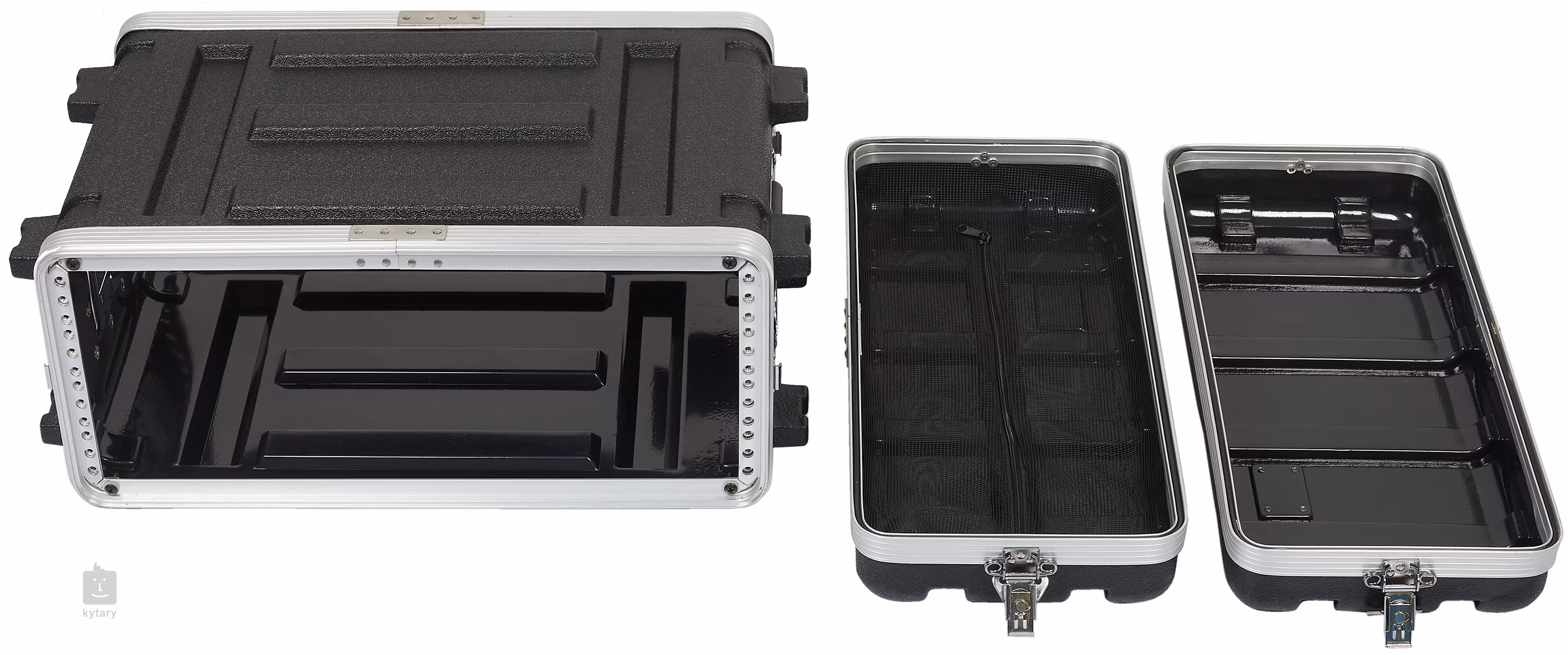 Plastový vysokopevnostný rackový kufor vhodný pre zvukárov, DJ-ov a hudobníkov, ktorí chcú maximálne chrániť svoje vybavenie a nástroje. Skriňa je vyrobená z kombinácie ľahkého materiálu ABS a hliníka, je vhodná pre zariadenia v 19" racku a má vnútornú výšku 4U alebo dvojicu robustných držadiel. Súčasťou balenia je štvorica zámkov a skrutiek na zabezpečenie zariadenia.
