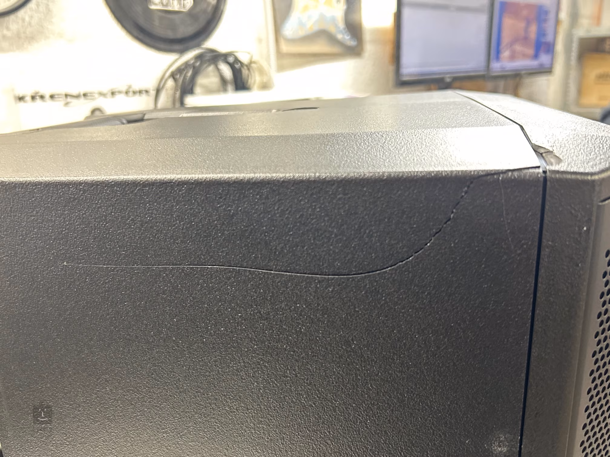 Prasklé šasi po stranách repro (viz foto). Jinak v pořádku a plně funkční.