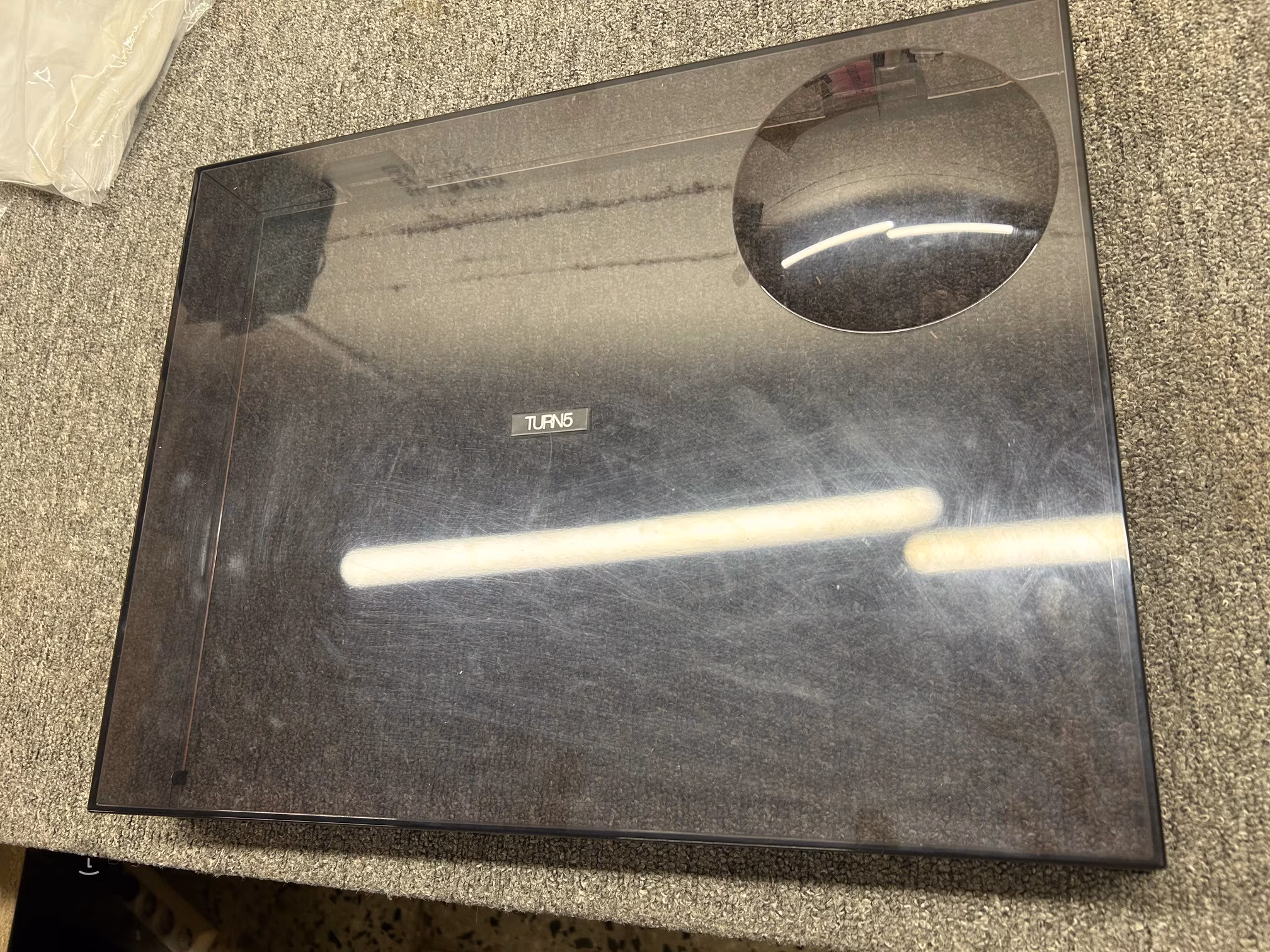 Poškriabaný je len kryt, gramofón je nový a nerozbalený.