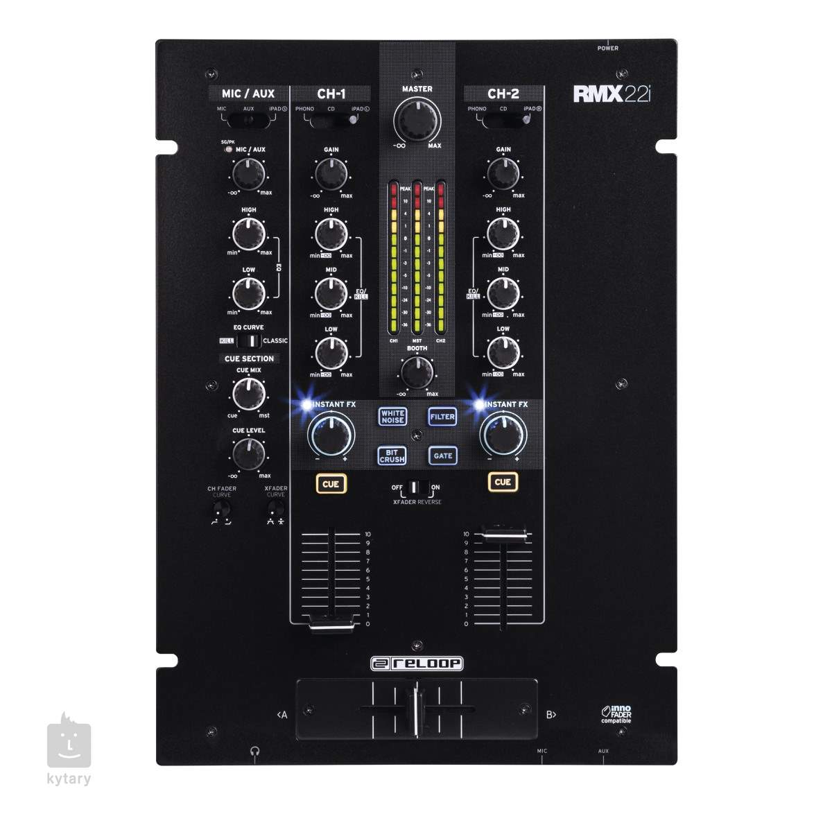 Reloop RMX-22i je kompaktný 2+1-kanálový klubový mixážny pult s digitálnou architektúrou a integrovanými efektmi Instant Sound Colour. Spĺňa rovnaké zvukové štandardy ako vlajková loď spoločnosti Reloop - mixážny pult RMX-80.