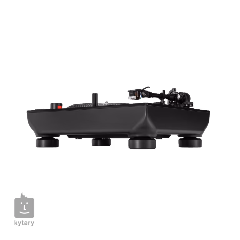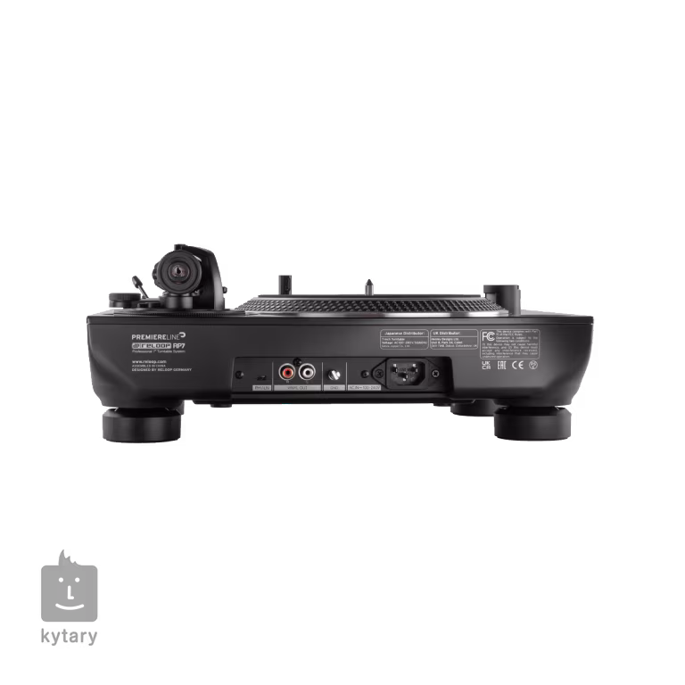 Z hľadiska pripojenia je gramofón vybavený prepínateľnými phono/linkovými výstupmi s pozlátenými konektormi, vďaka čomu ho možno ľahko integrovať do akejkoľvek DJ zostavy bez potreby samostatného phono vstupu. Robustné kovové šasi s čiernou metalickou povrchovou úpravou dodáva gramofónu profesionálny vzhľad a vysokú odolnosť na použitie doma, v štúdiu a na pódiu.