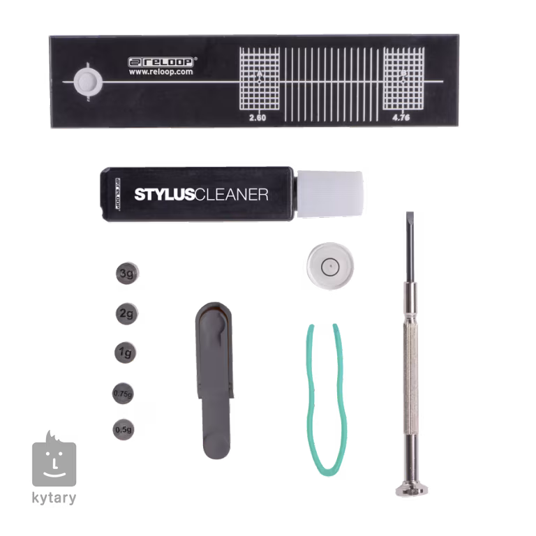 Súprava nástrojov na čistenie a servis vhodná pre profesionálne gramofóny DJ a Hi-Fi. Súprava obsahuje zarovnávacie pravítko, 5 kusov vyvažovacích závaží, meradlo na sledovanie ihly, čistiaci nástroj, skrutkovač, malú vodováhu a pinzetu. Správna starostlivosť o gramofón nielen predĺži životnosť zariadenia, ale aj ochráni vaše obľúbené vinyly.