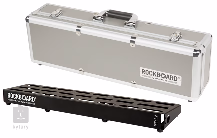 Pedalboard Rockboard DUO 2.2 s puzdrom Flight Case vychádza z nového dizajnu pedalboardu Rockboard/Warwick z roku 2018. Hlavnou prioritou bolo zníženie hmotnosti a zvýšenie pevnosti a odolnosti, čo sa dosiahlo novou jednodielnou konštrukciou z hliníka valcovaného za studena a nezváraného. Pedalboard bez problémov pojme 5 až 9 pedálových efektov (v závislosti od veľkosti). Jeho praktická konštrukcia s rozšírenými slotmi umožňuje použiť montážne dosky Rockboard QuickMount pre pedále rôznych tvarov a veľkostí (nie sú súčasťou balenia, priložená páska so suchým zipsom je okamžitým riešením), ľahko pripevniť napájací multiadaptér na spodnú stranu pedalboardu a efektívne organizovať káble a prepojky.