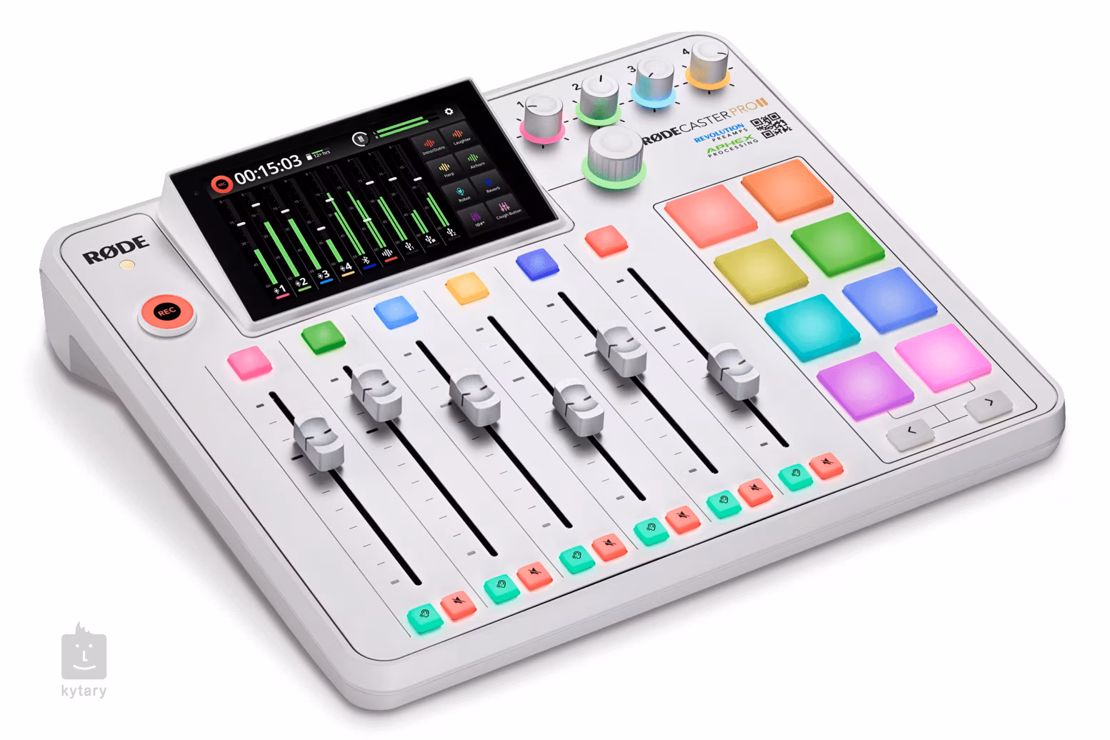 Špičkové predzosilňovače Revolution Preamps poskytujú dokonalú kvalitu zvuku s akýmkoľvek mikrofónom, nástrojom, náhlavnou súpravou alebo linkovým zdrojom. Tieto predzosilňovače s vysokým ziskom a veľmi nízkym šumom, ktoré boli od základu navrhnuté špeciálne pre sériu RODECaster, sú navrhnuté tak, aby eliminovali potrebu externých mikrofónových predzosilňovačov. Riešenie všetko v jednom je napokon synonymom celkovej topológie RODECaster, pretože okrem predzosilňovača je ďalším dôležitým aspektom spracovanie zvuku a postprodukčné spracovanie. O to sa stará sada autentických emulácií legendárnych hardvérových zvukových procesorov v réžii spoločnosti APHEX, vrátane Aural Exciter, Big Bottom a hlavného kompresora Compellor. K dispozícii je tiež šumová brána, HP filter, de-esser a trojpásmový EQ pre každý kanál.