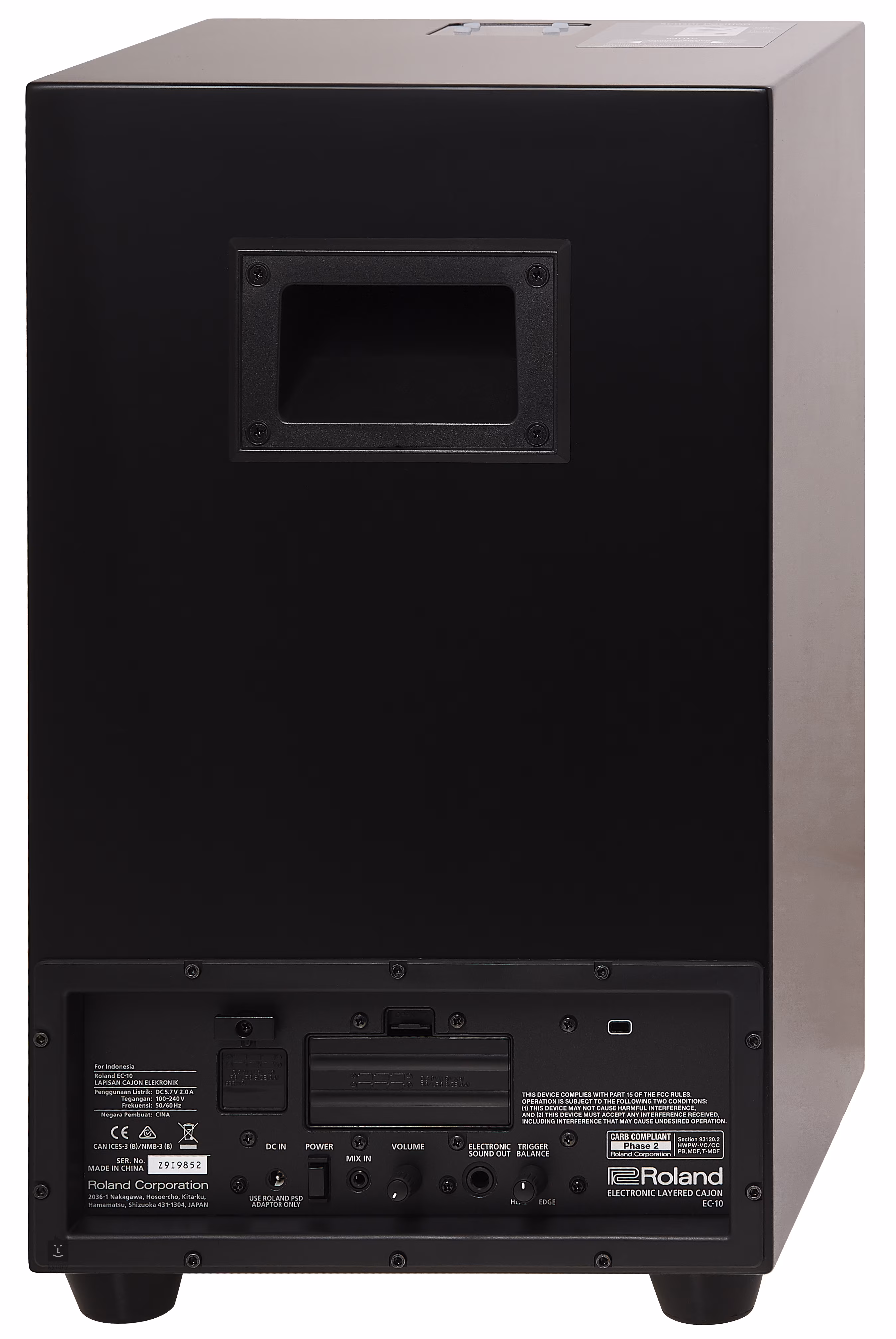 Okrem toho, že je to kvalitný akustický cajon, na ktorý môžete hrať tak, ako ste zvyknutí, ponúka EC-10 rozšírený repertoár elektronických zvukov. Celkovo je tridsať vzoriek rozdelených do troch skupín. Prvú skupinu tvoria klasické akustické zvuky cajonu, druhá skupina rozširuje vašu hru o tradičné zvuky bicích nástrojov, ako sú tamburína alebo djembe, a tretiu skupinu tvoria elektronické zvuky bicích nástrojov. Cajon obsahuje okrem iného aj obľúbený snare zo známeho modelu TR 808.