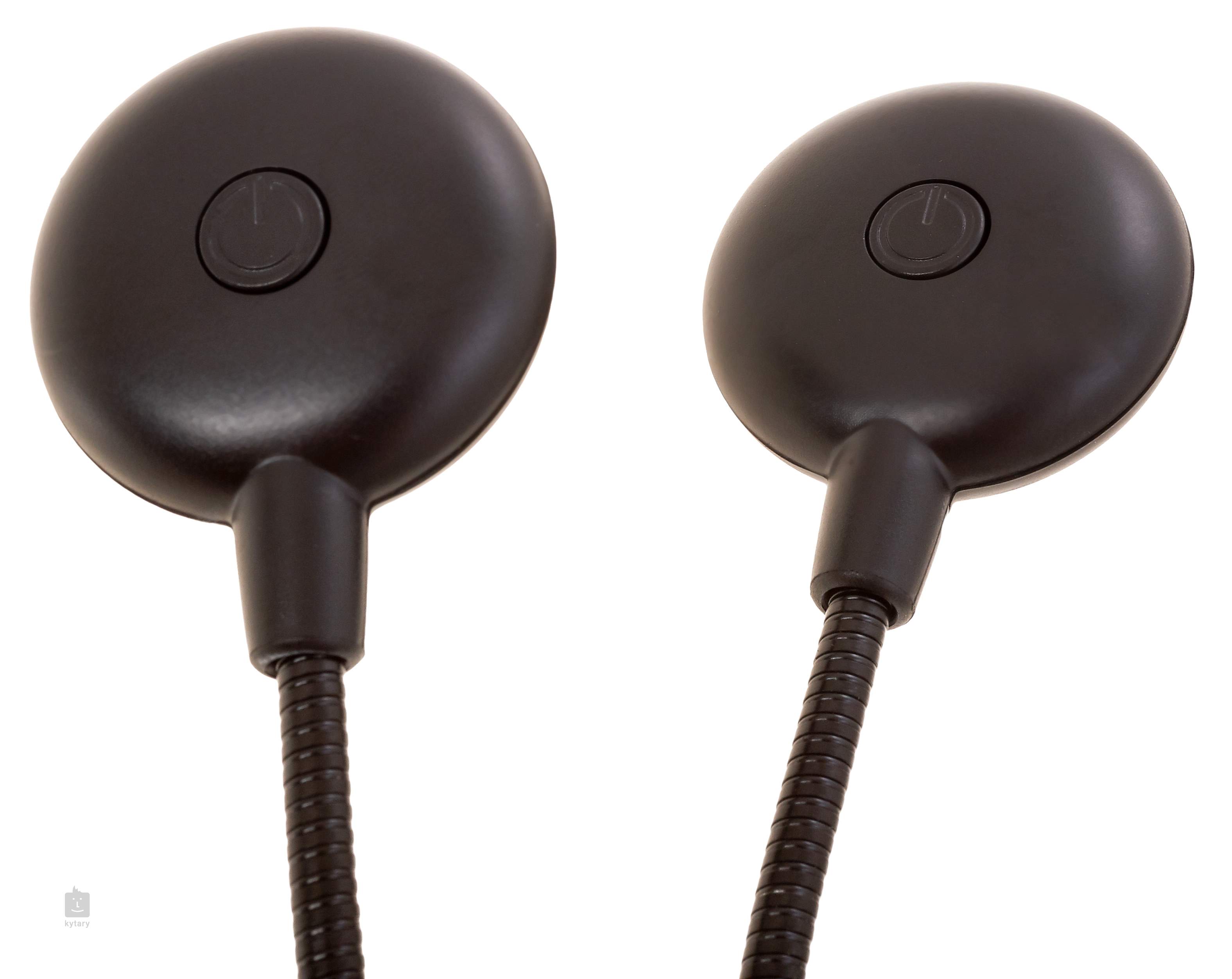 Kompaktná prívesná lampa s dvoma LED žiarovkami na každom ramene, ktoré vydávajú teplé svetlo. Ramená sú plne nastaviteľné a jas svetla má dve úrovne. Lampa je napájaná tromi batériami veľkosti AAA.