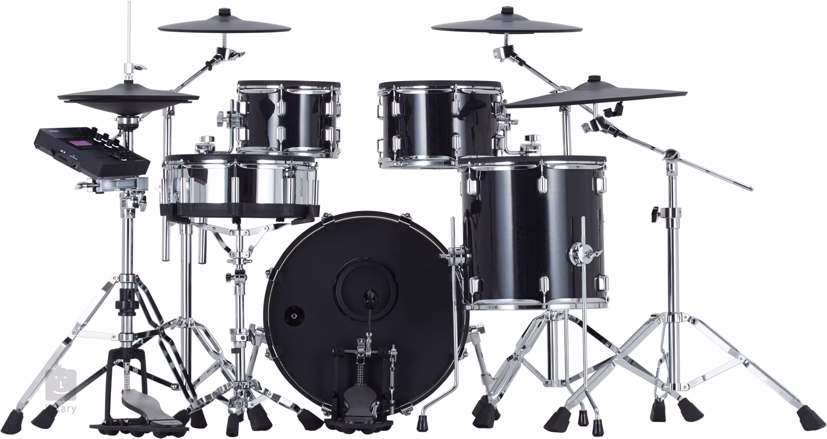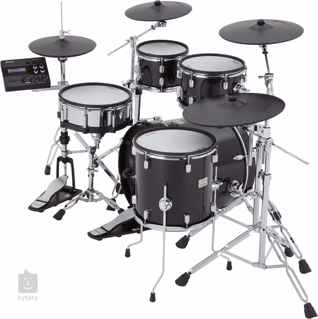 Maximálny zážitok s akustickým dizajnom V-Drums Ak potrebujete na pódiu živý dojem kompletnej akustickej bicie súpravy, ale aj praktickosť a potenciál elektronických bicích, VAD507, nástupca vynikajúceho modelu VAD506, je pre vás tým správnym riešením. Táto prémiová päťdielna súprava má drevené korpusy s plným priemerom a úžasnou povrchovou úpravou, ktoré sú namontované na stojanoch s dvojitými výstuhami a vytvárajú vzhľad, ktorý presvedčí vaše publikum, že hráte na akustické bicie. Pokročilá technológia digitálneho snímača Roland a vylepšený dynamický modul TD-27 poskytujú rovnako pôsobivý zvuk a odozvu, vďaka čomu je každý snare, jemný zvuk, vír a chvenie odhalené do najmenších detailov.