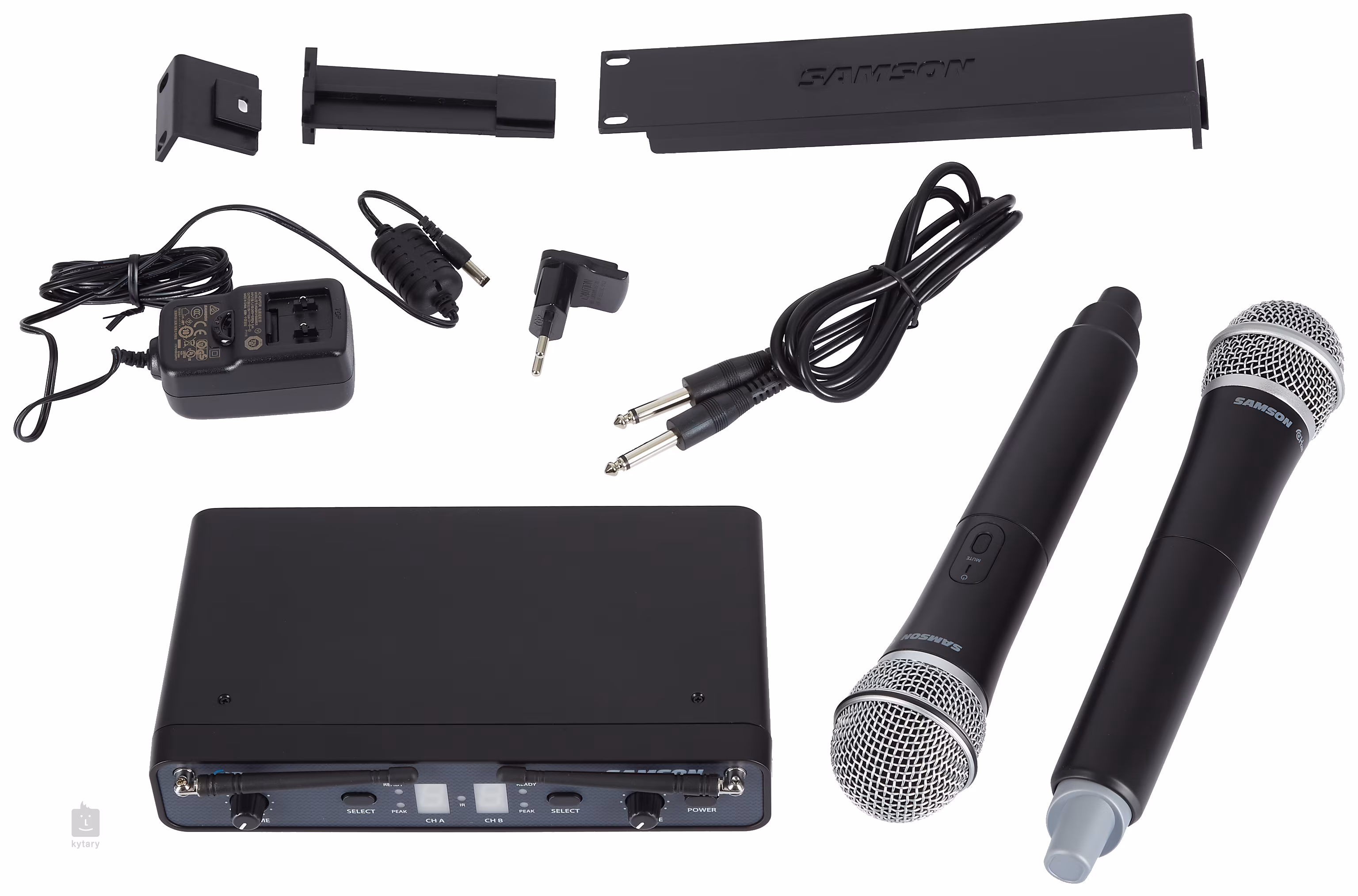 Balenie obsahuje prijímač CR288, vysielač CH288, 2x mikrofóny Q6, kábel Jack 6,3 na Jack 6,3, napájací adaptér a držiaky do stojana.